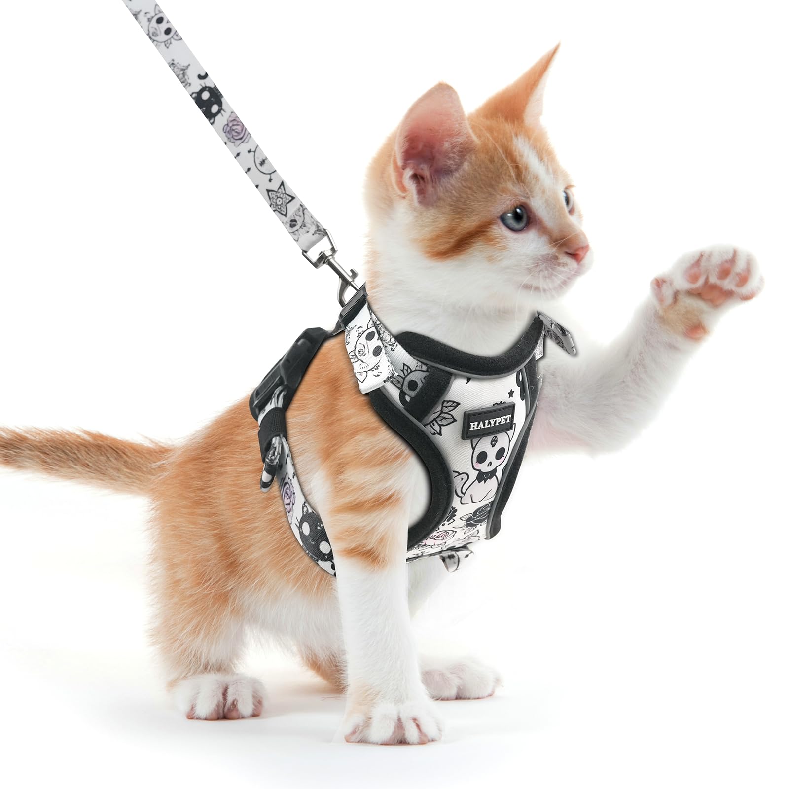 escape-proof cat harness and leash set features an integrated buckle design. Unlike regular over-the-head harnesses, it only takes one step to press, secure, and release—plus, with four adjustable straps, it provides unbeatable security to keep your cat from escaping. Crafted from soft, breathable mesh, the cat leash and harness set keeps your cat cool and comfortable in every season. Its vest-style design distributes leash pressure evenly across the chest and shoulders, protecting your cat’s fragile neck and preventing choking. With fully adjustable straps, it ensures a custom fit for both kittens and adult cats, while reflective strips enhance visibility and safety in low-light conditions. The included 5ft leash comes with a 360° rotating clip to prevent tangles, giving your cat the freedom to explore safely. Whether you’re taking your kitty for a casual stroll, visiting the vet, or enjoying outdoor travel, this cat harness and leash set is designed to keep your pet secure, comfortable, and stylish.