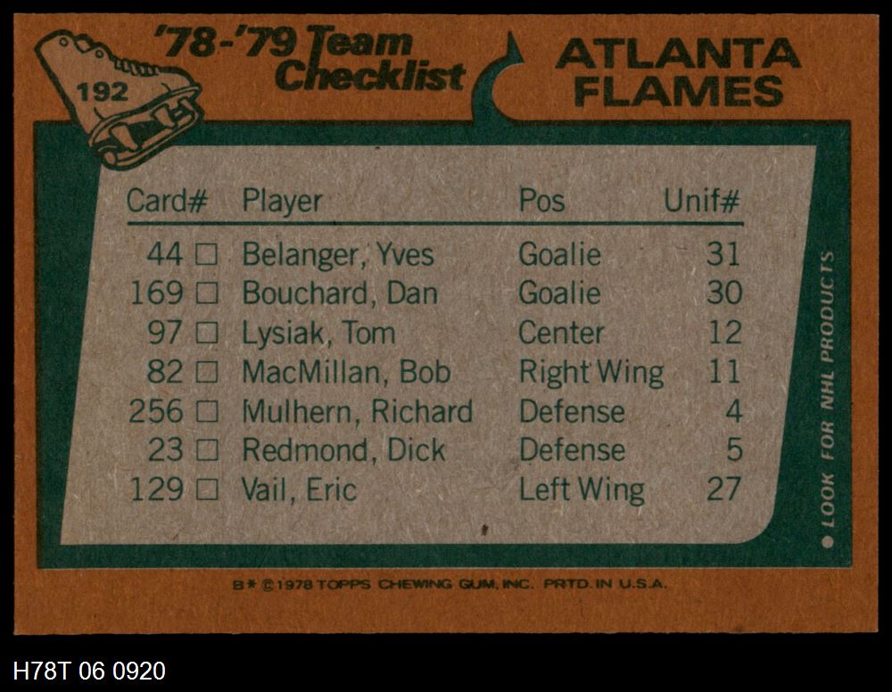 This 1978-79 Topps Atlanta Flames Team Set contains Atlanta Flames cards, and would make the perfect gift for any Atlanta Flames fan. ?With an inventory of over 20,000 team sets, Dean's Cards has Team Sets & Near Team Sets for just about every team, in multiple conditions, for all sports, for most major sets issued between 1909 and 1979.