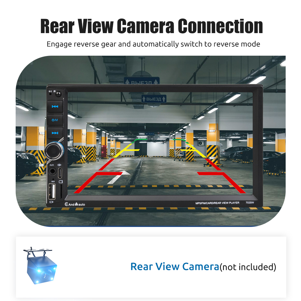 【Reversing Image Function】After connected with the rear camera, you can see the image on the radio screen through the rear view camera when reversing your car. The 7-inch touch screen will automatically display the reverse image once you pull in reverse. Make your daily reversing safer.