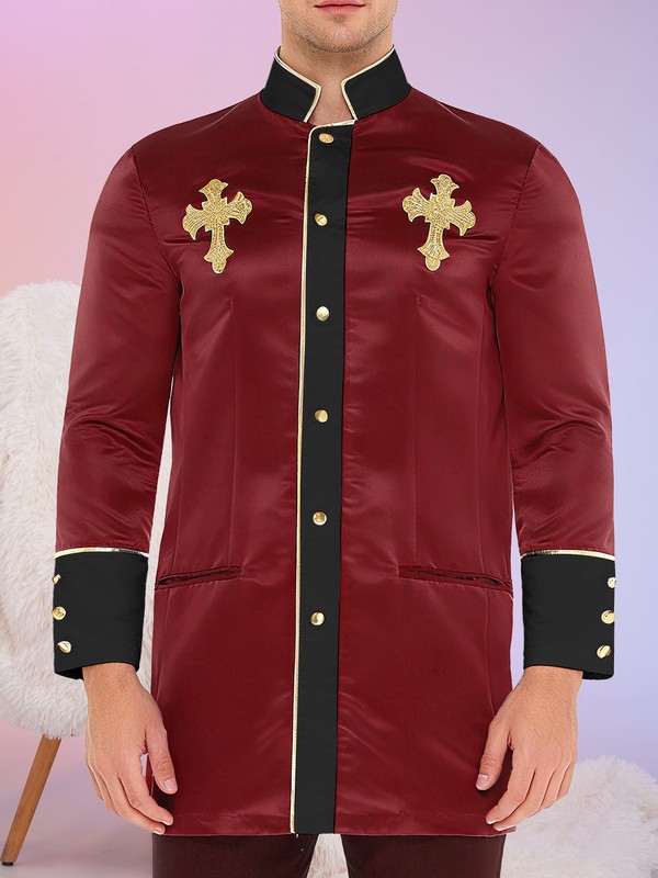 The cross embroidery is a unique and eye-catching detail, making the jacket stand out and adding a religious or cosplay-appropriate touch.