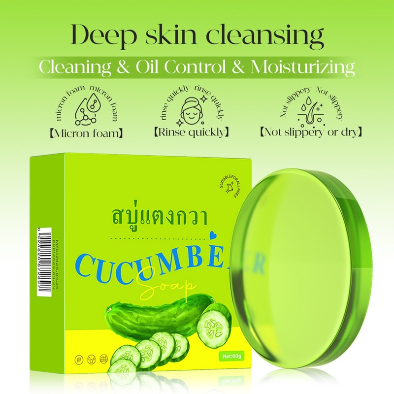 This cucumber-scented soap bar offers a pleasant and refreshing bathing experience, adding a touch of nature.