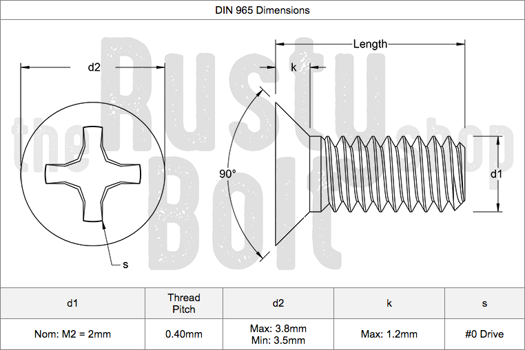 M2 x 5mm, Phillips Flat Head Screws, Steel, Black