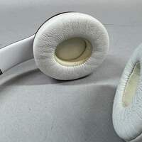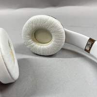 The ear cup housing is in good condition with no damage and minimal wear. The ear cup cushions are in good condition, clean and have no odor. The headband is in good condition with little to no wear. The buttons have no signs of heavy use or wear. The hinges are in good condition with minor signs of use. The ports are clean and in good condition. The earbuds are in good condition and clean. The wire is in good condition with little signs of wear.
