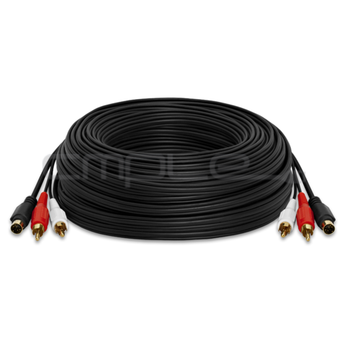 This long S-Video Male to Male cable includes two Male to Male RCA cables combined into one handy cable! This cable is perfect for connecting S-Video components featuring an audio track together. S-video provides a sharper image than composite video because it separates the video signal into two components while composite video utilizes only one coaxial cable to transmit both signals. It can be used with any type of A/V equipment that uses S-video and RCA audio connections.