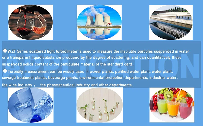 Can be widely used in power plant, pure water, water plant, sewage treatment plant, beverage plants, environmental tection departments, industrial water, the wine industry and the pharmaceutical industry, epidemic prevention departments, hospitals and other departments of the turbidity measurements.