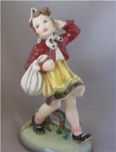 The figurine is quite large at just over 10 inches and the colors are amazing. A beautiful native Austrian girl strolling along. A slight breeze of wind makes her skirt wave and her hair flutter.