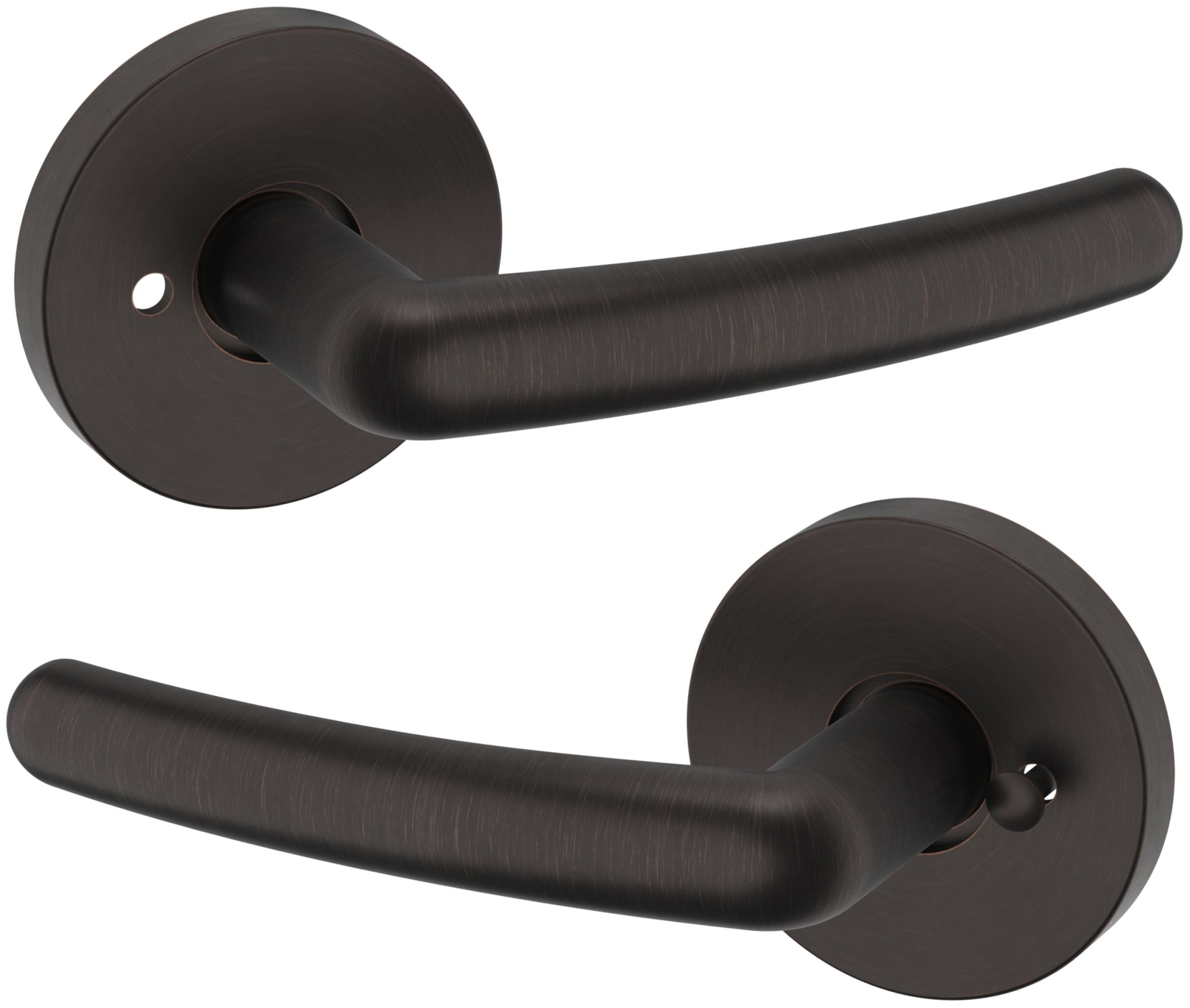 Privacy: Privacy door hardware features a locking mechanism on the interior for use on bedroom and bathroom doors where locking is needed. The exterior side features a small pin hole to unlock the door hardware from the outside.