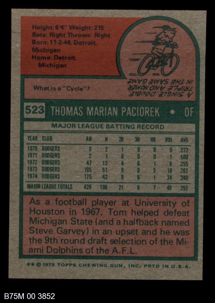 | 1975 Topps Mini #523 Tom Paciorek | 5 - EX | Front | Back |