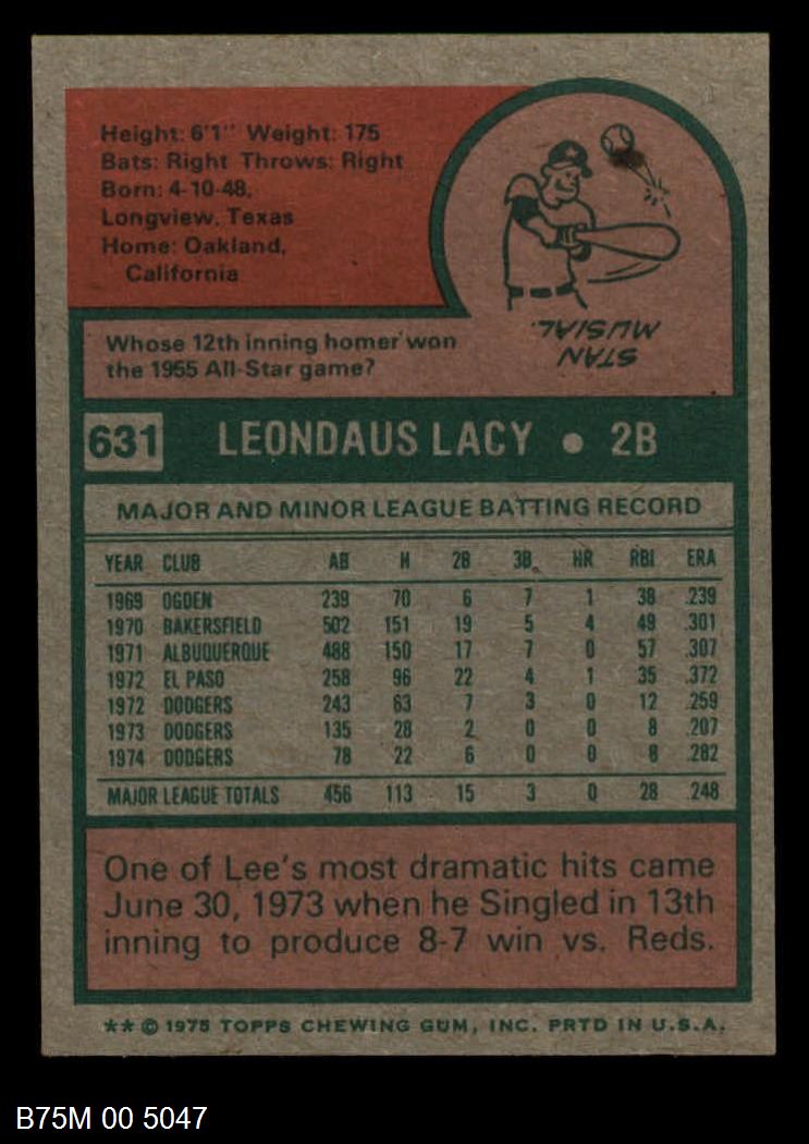 | 1975 Topps Mini #631 Lee Lacy | 4 - VG/EX | Front | Back |