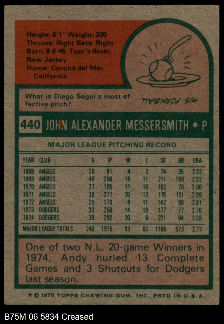 | 1975 Topps Mini #440 Andy Messersmith | 3 - VG | Front | Back |