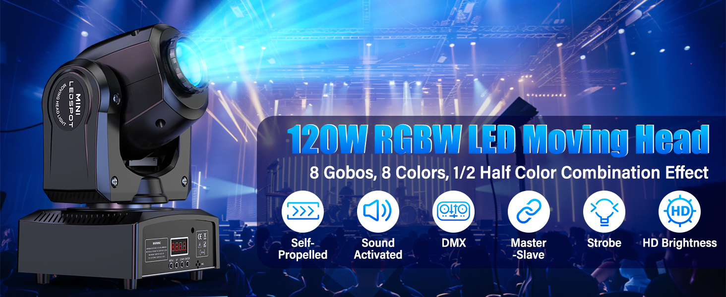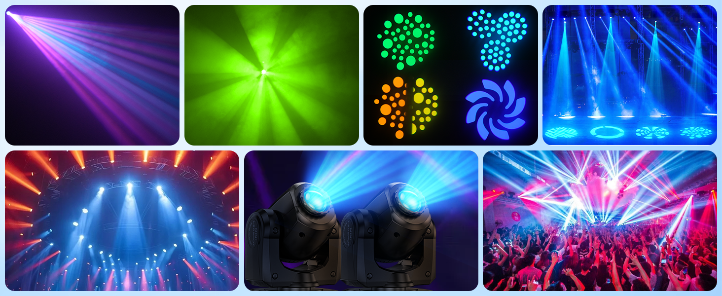 Mini-pattern moving head light, compact structure, the output is good, with a variety of patterns, easy installation, easy to carry, moving in light weight, projection accuracy, good effect.