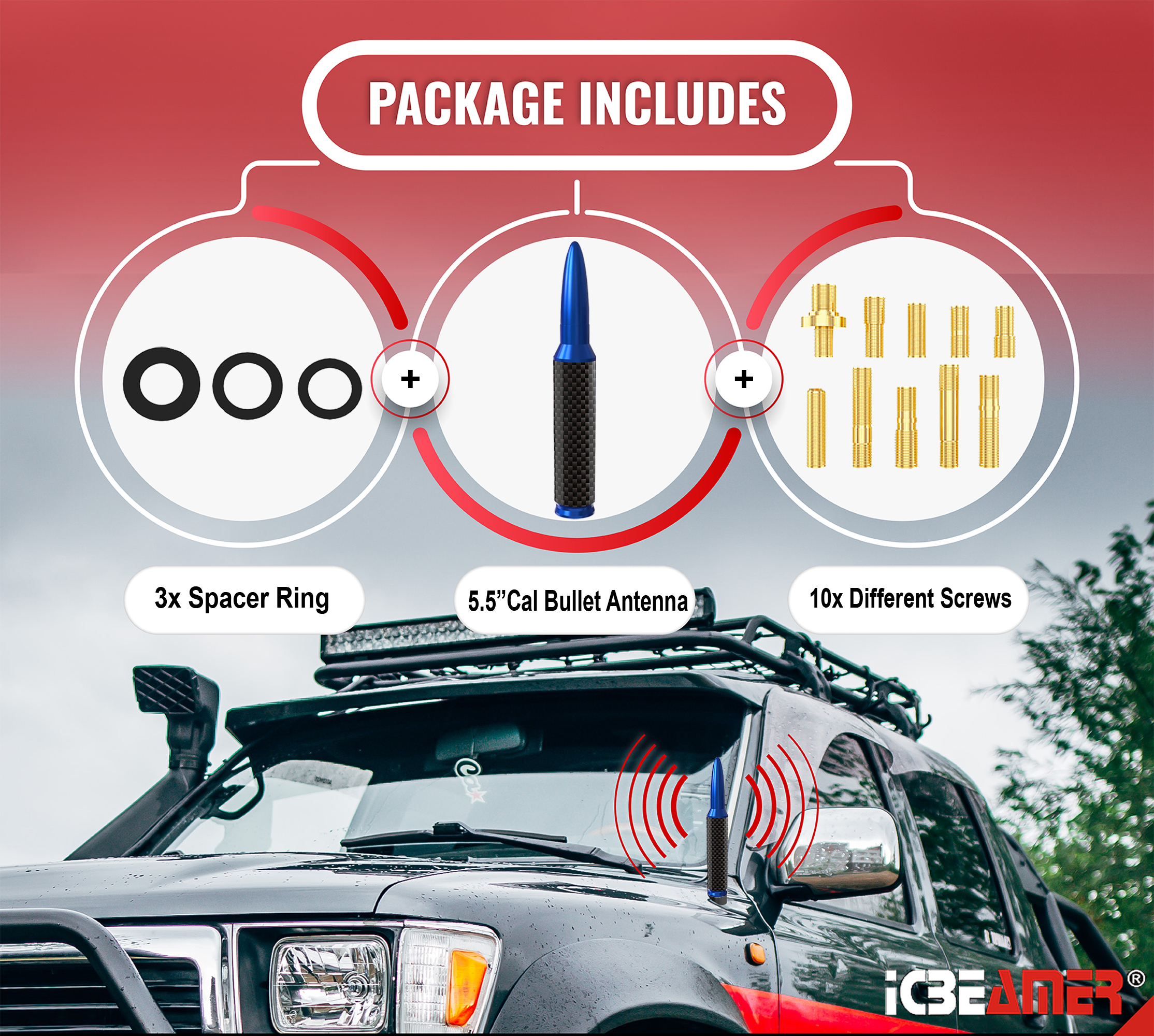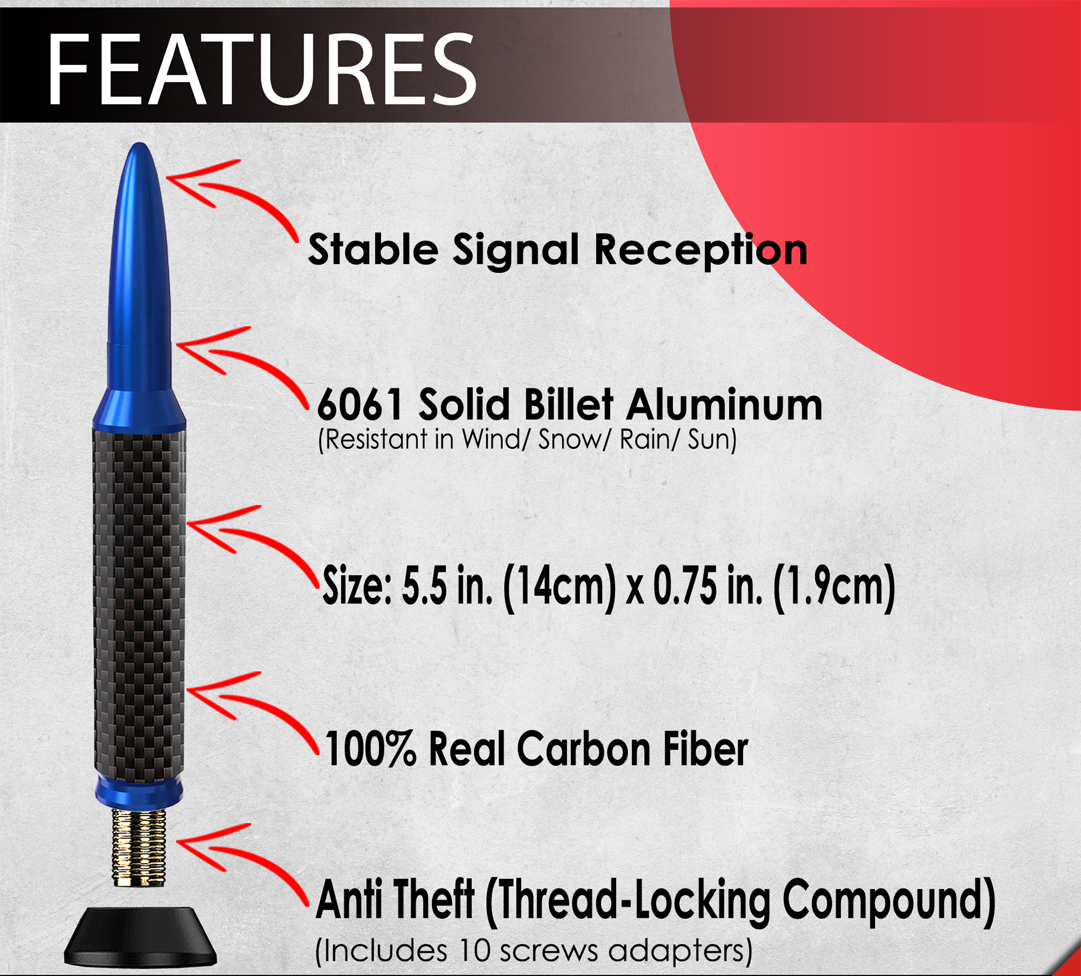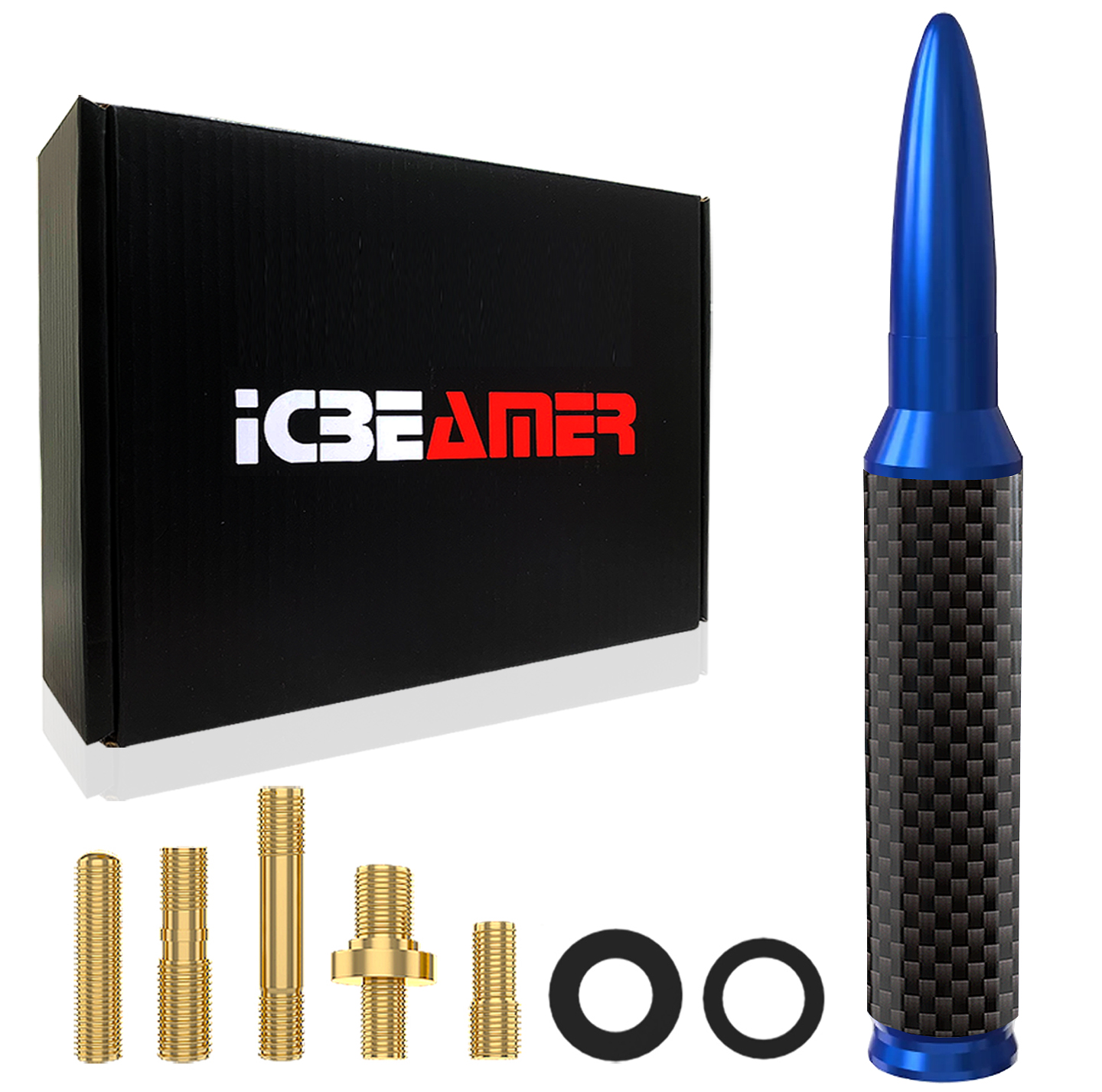 ICBEAMER 50 Cal Carbon Fiber Bullet Antenna Replacement [Color: Blue], Universal Fit Truck Van Cars Made with 6061 Solid Aluminum & Anti Theft Anti Chip Design Universal Fit good for AM/FM Radio