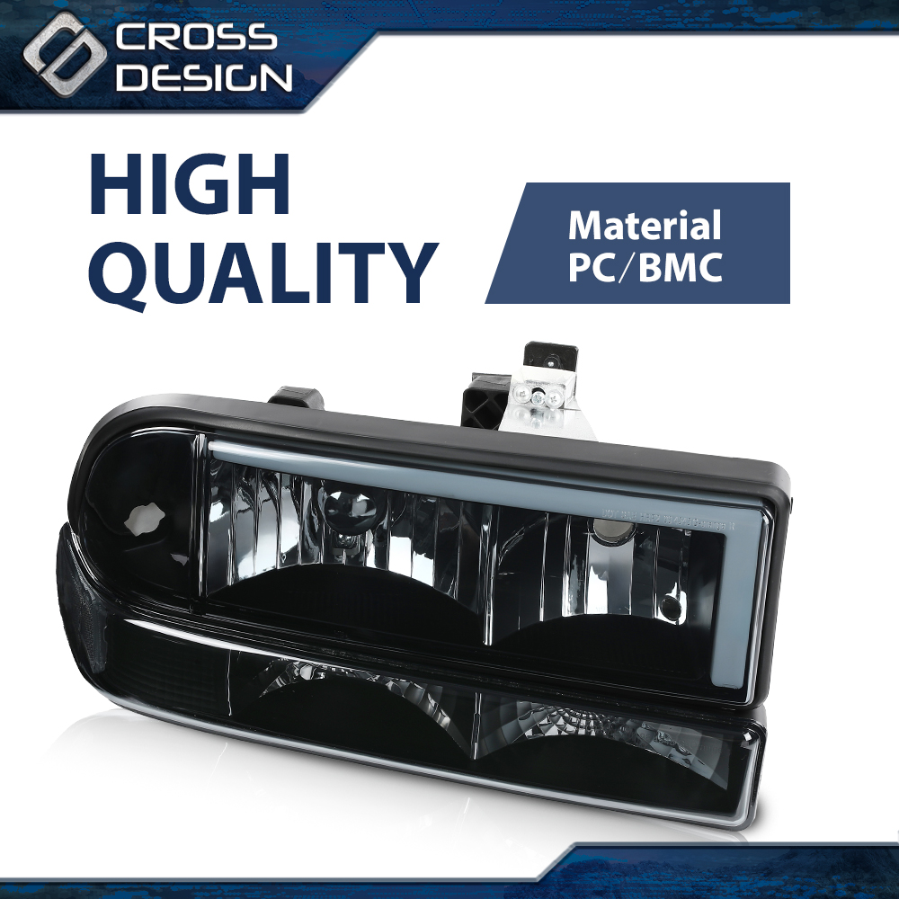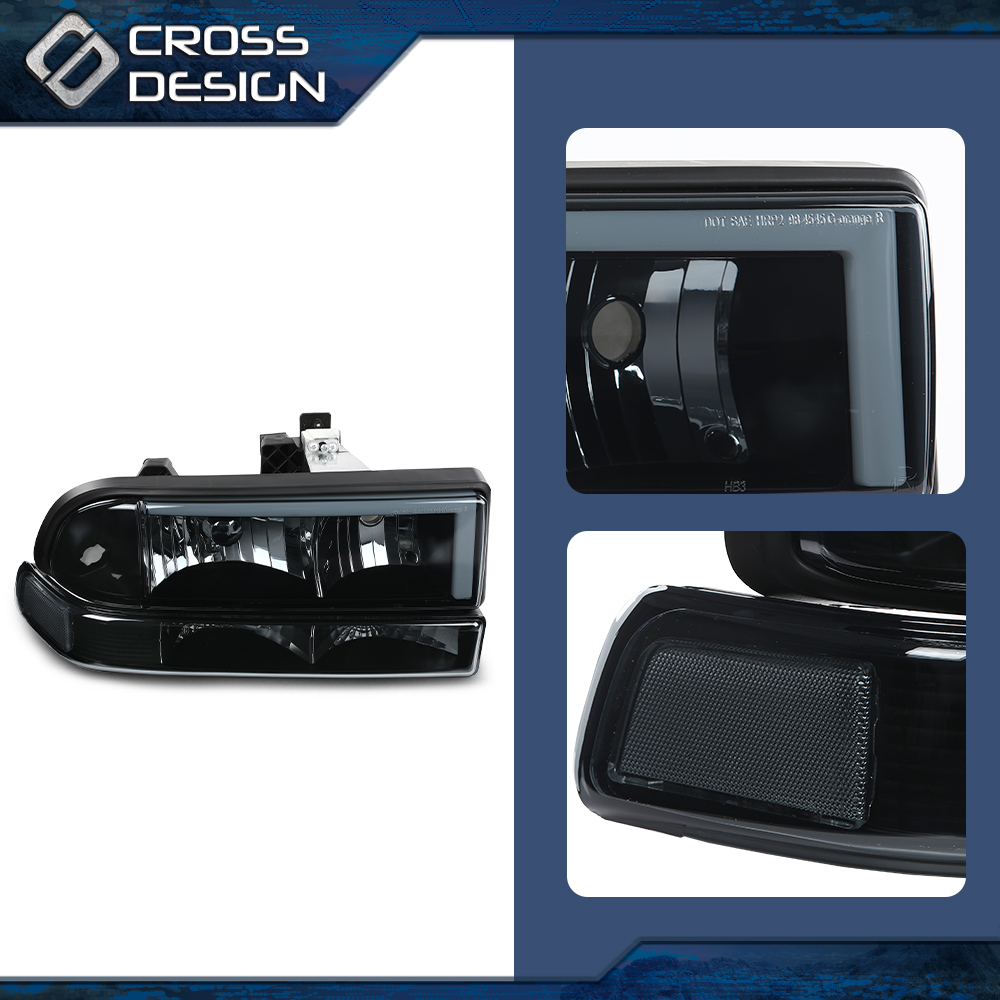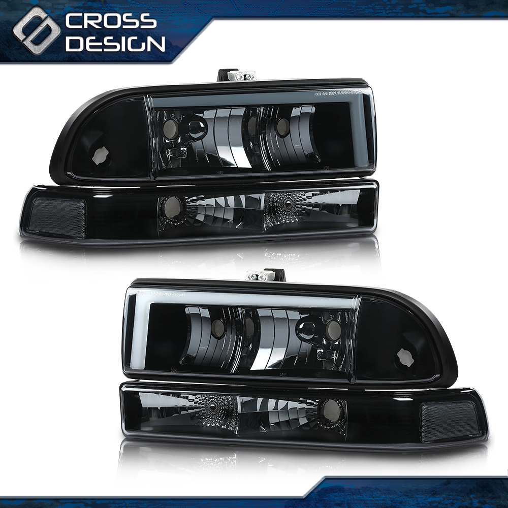 Fit For 98-04 Chevy Blazer S10 LED Black Housing Smoked Headlight Lamp
