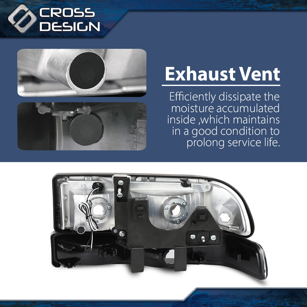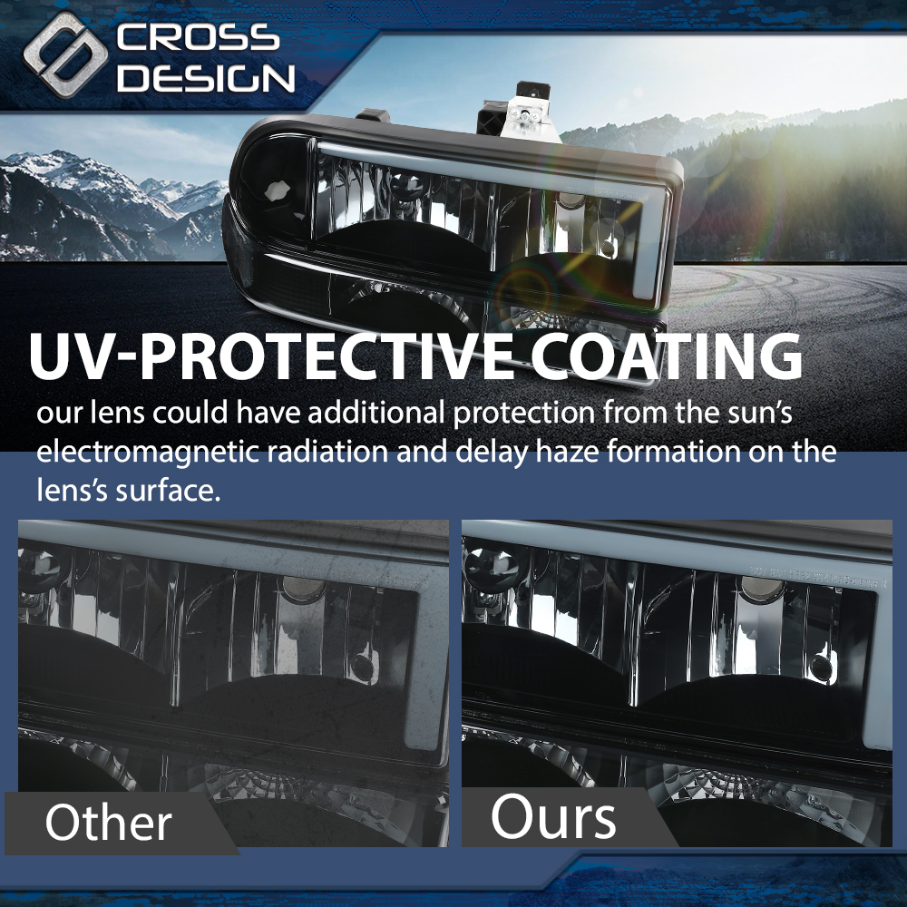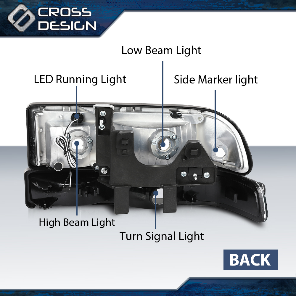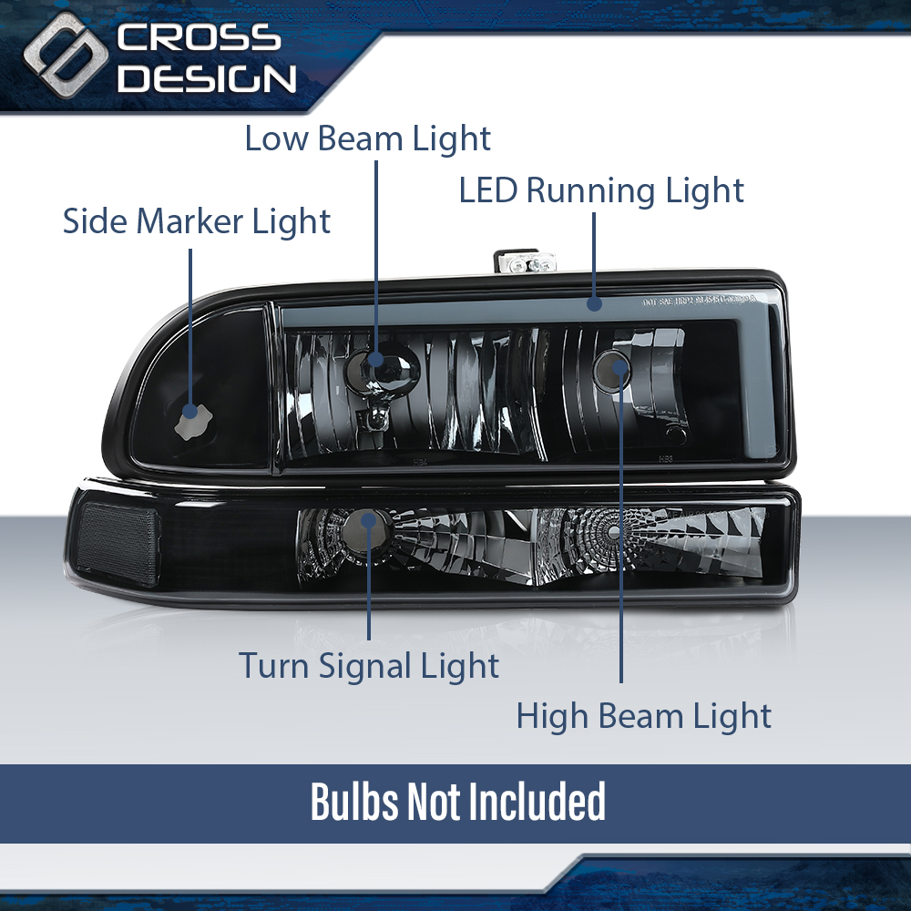 Fit For 98-04 Chevy Blazer S10 LED Black Housing Smoked Headlight Lamp