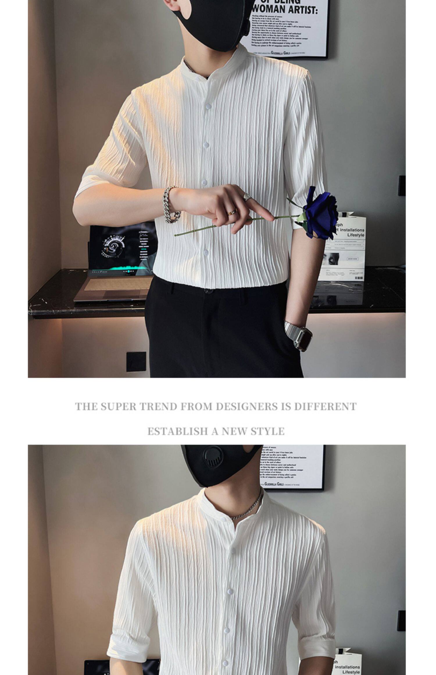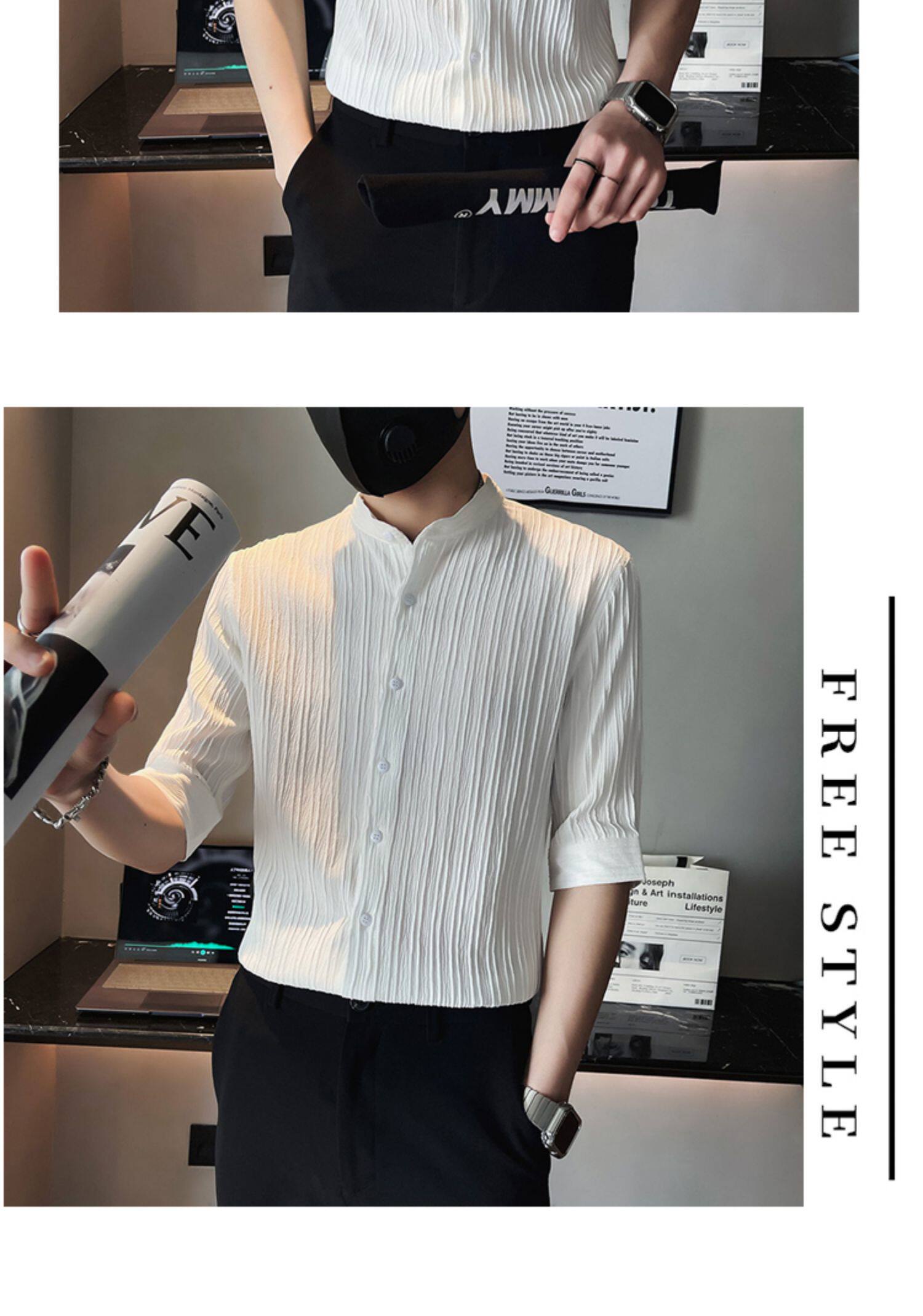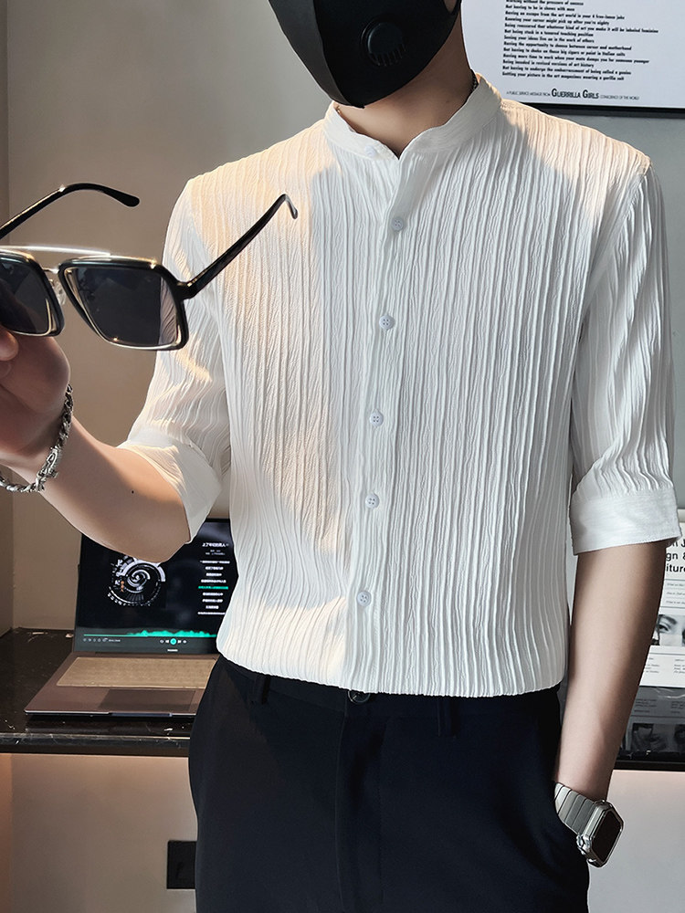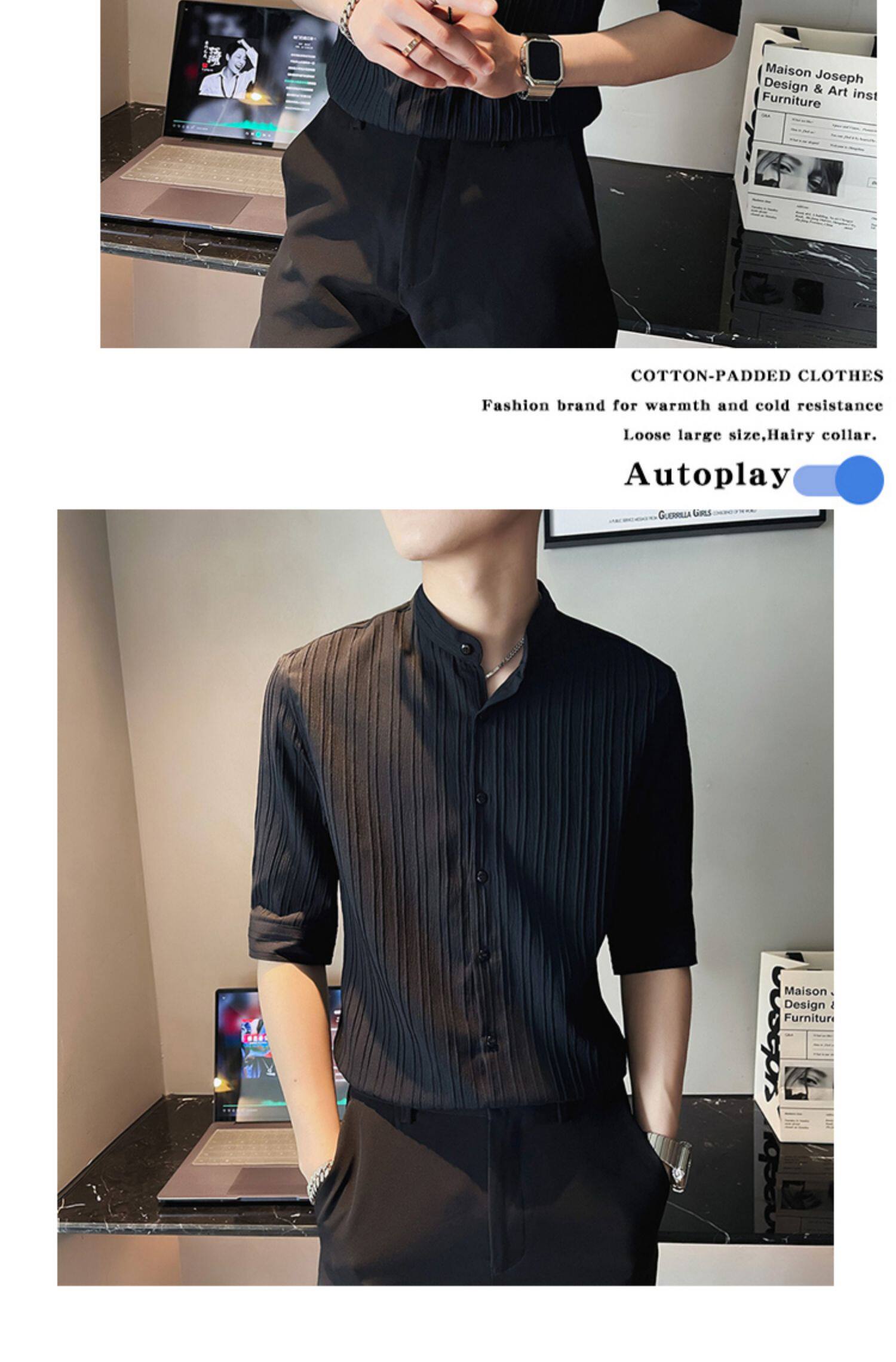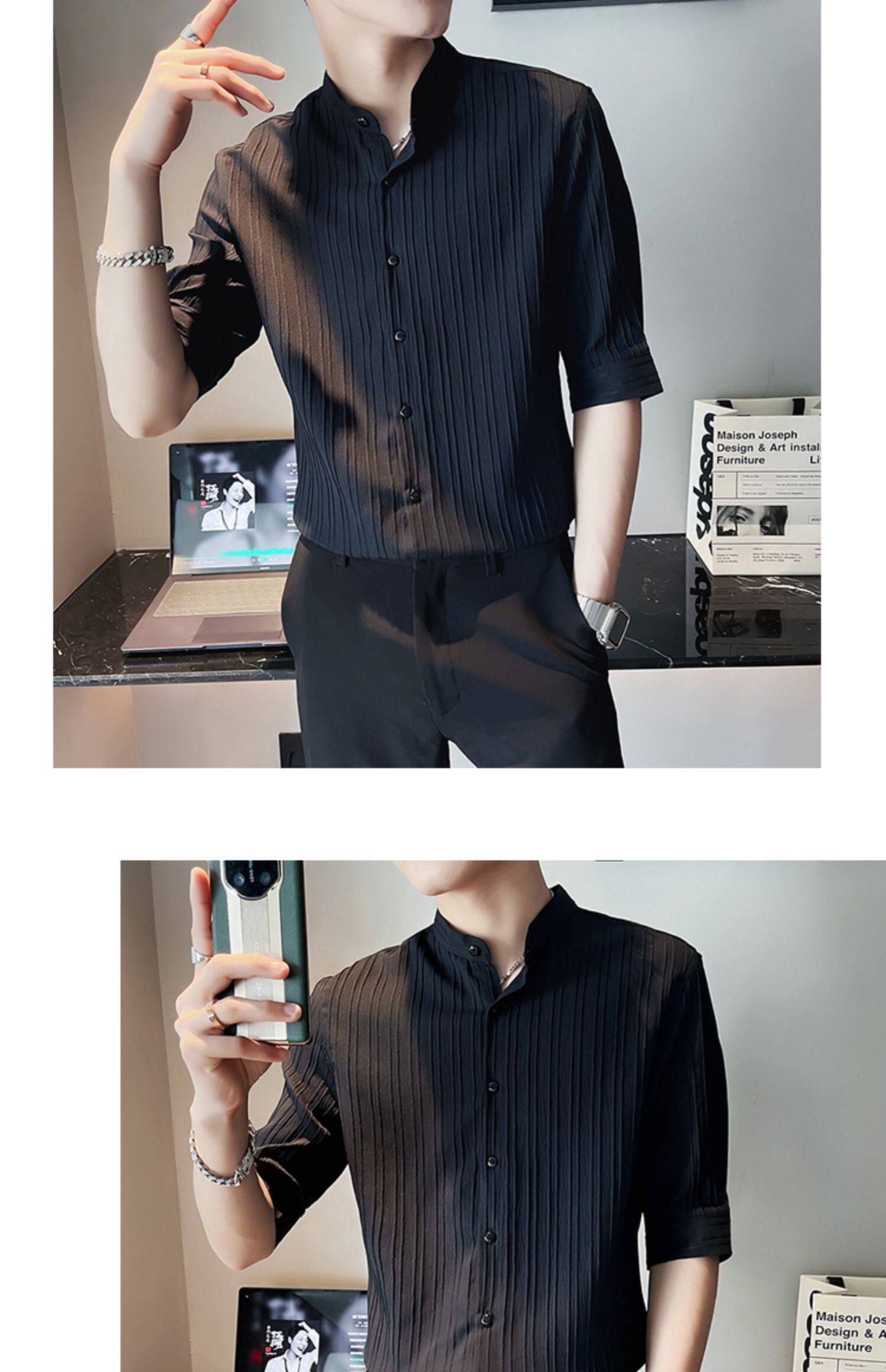 Stand Collar Shirt Men's Short-sleeved Summer Ice Silk Striped High-end Handsome