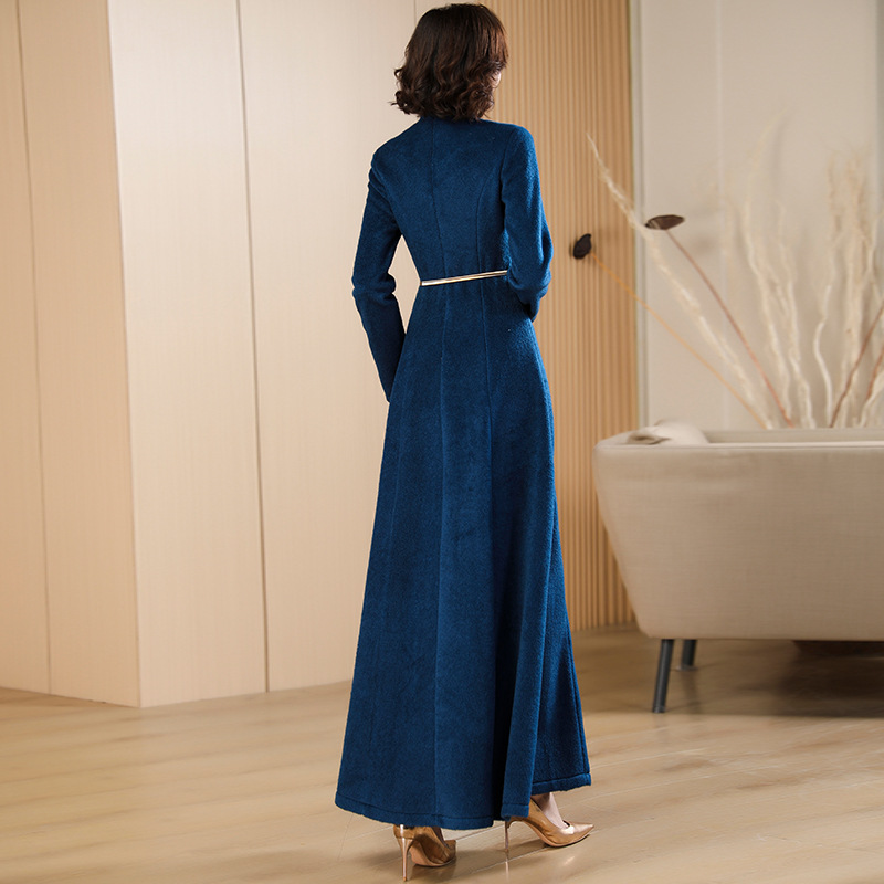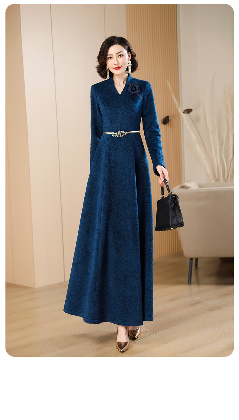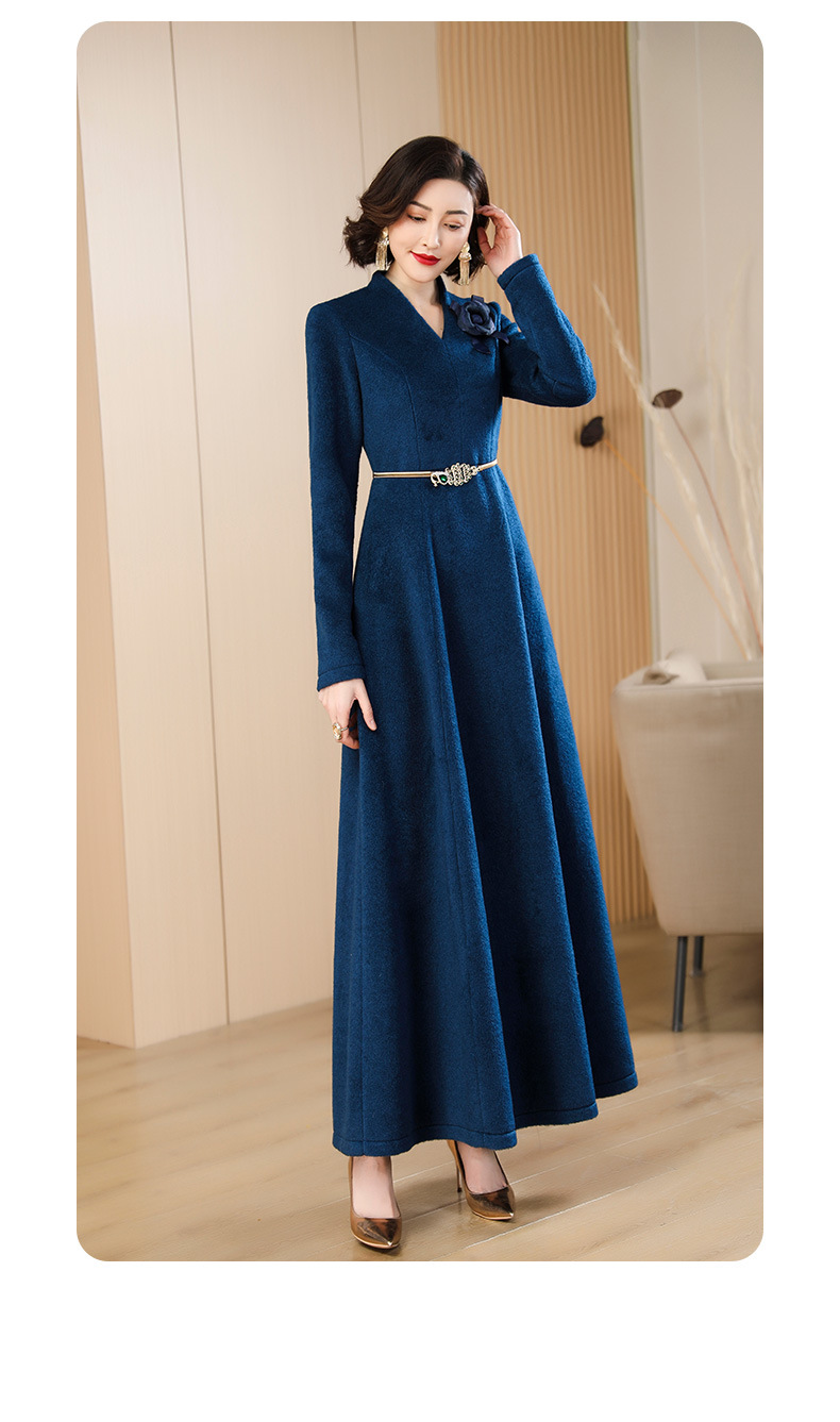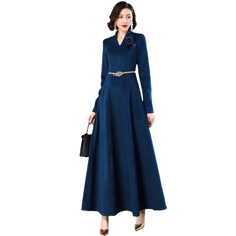 New Womens Long Velvet Dress Ladies Maxi V Neck Slim Swing Dress Retro Leisure
