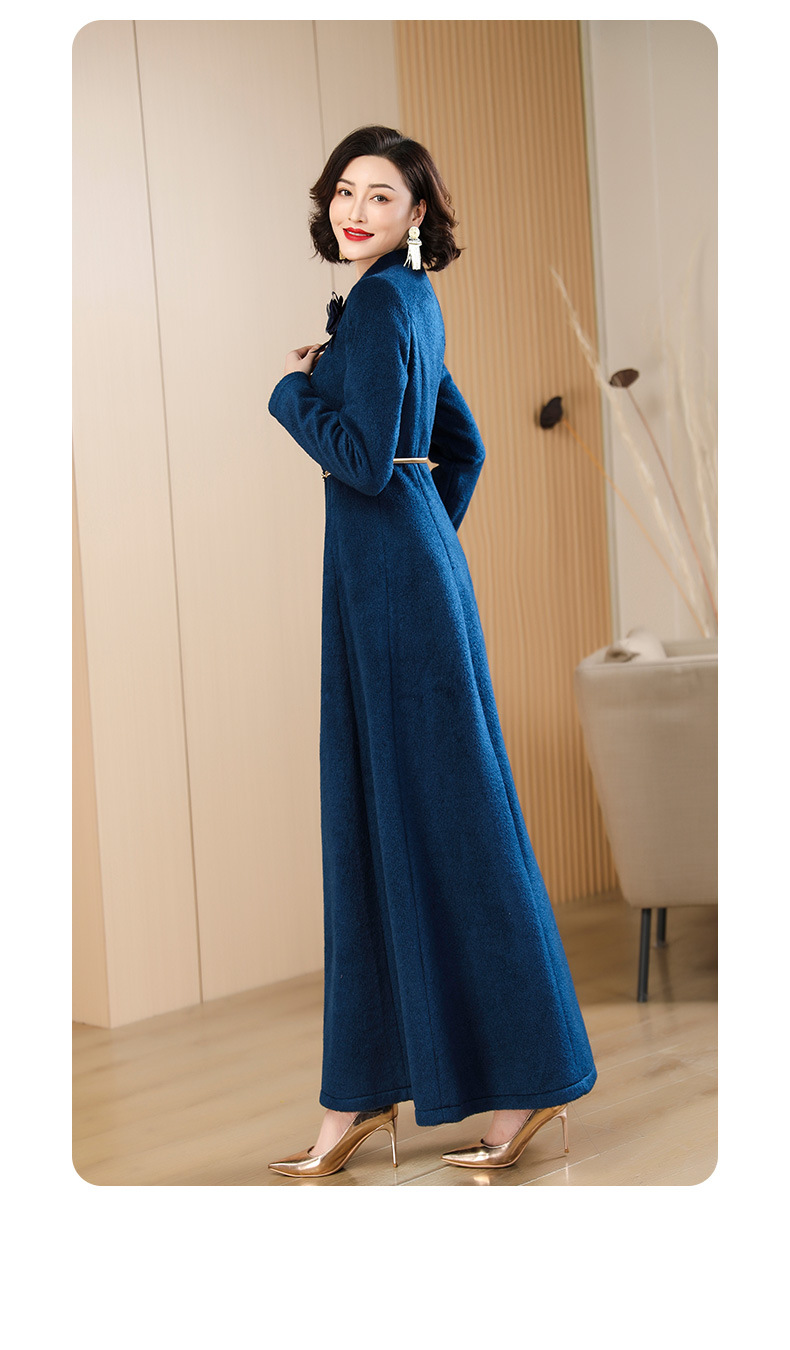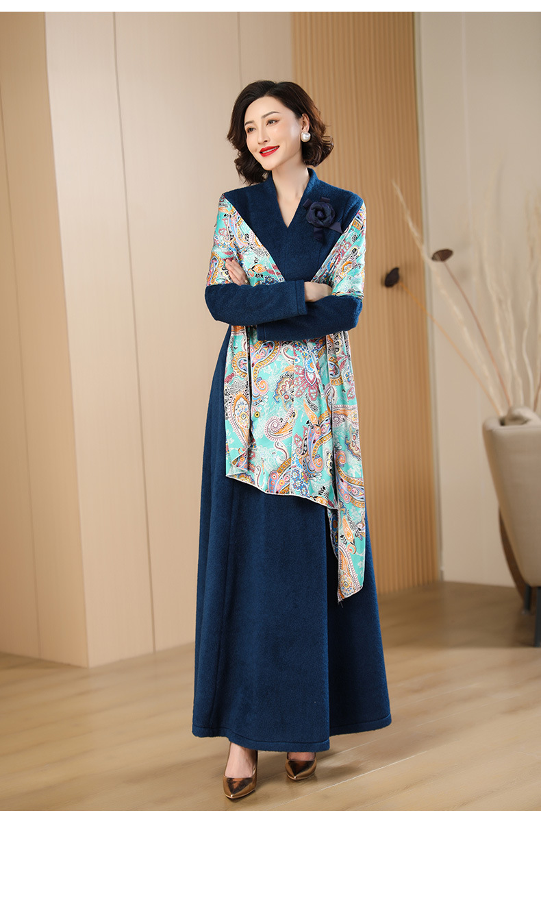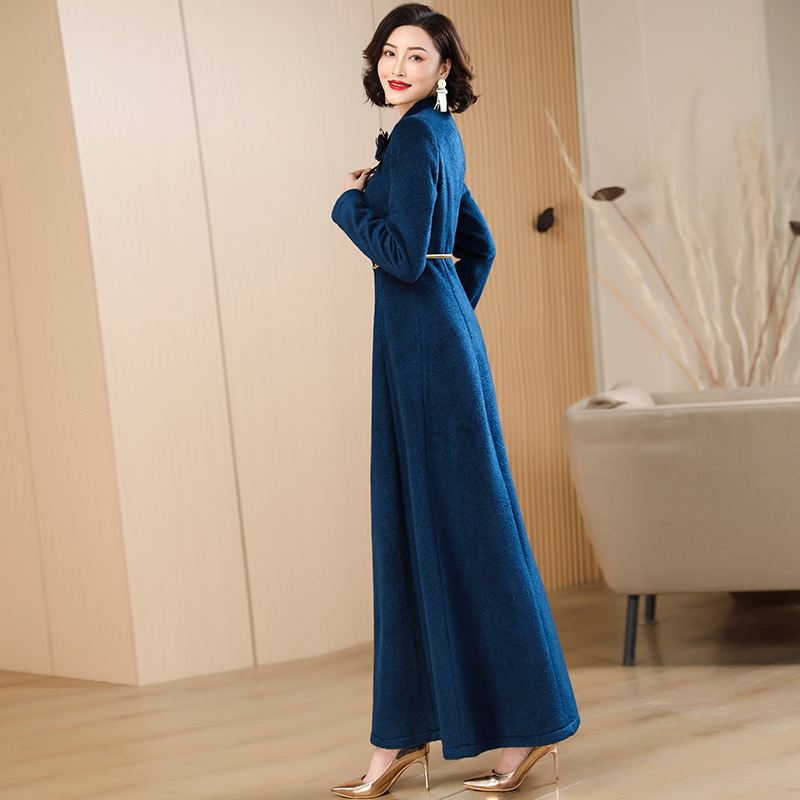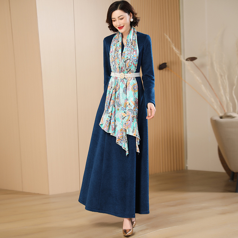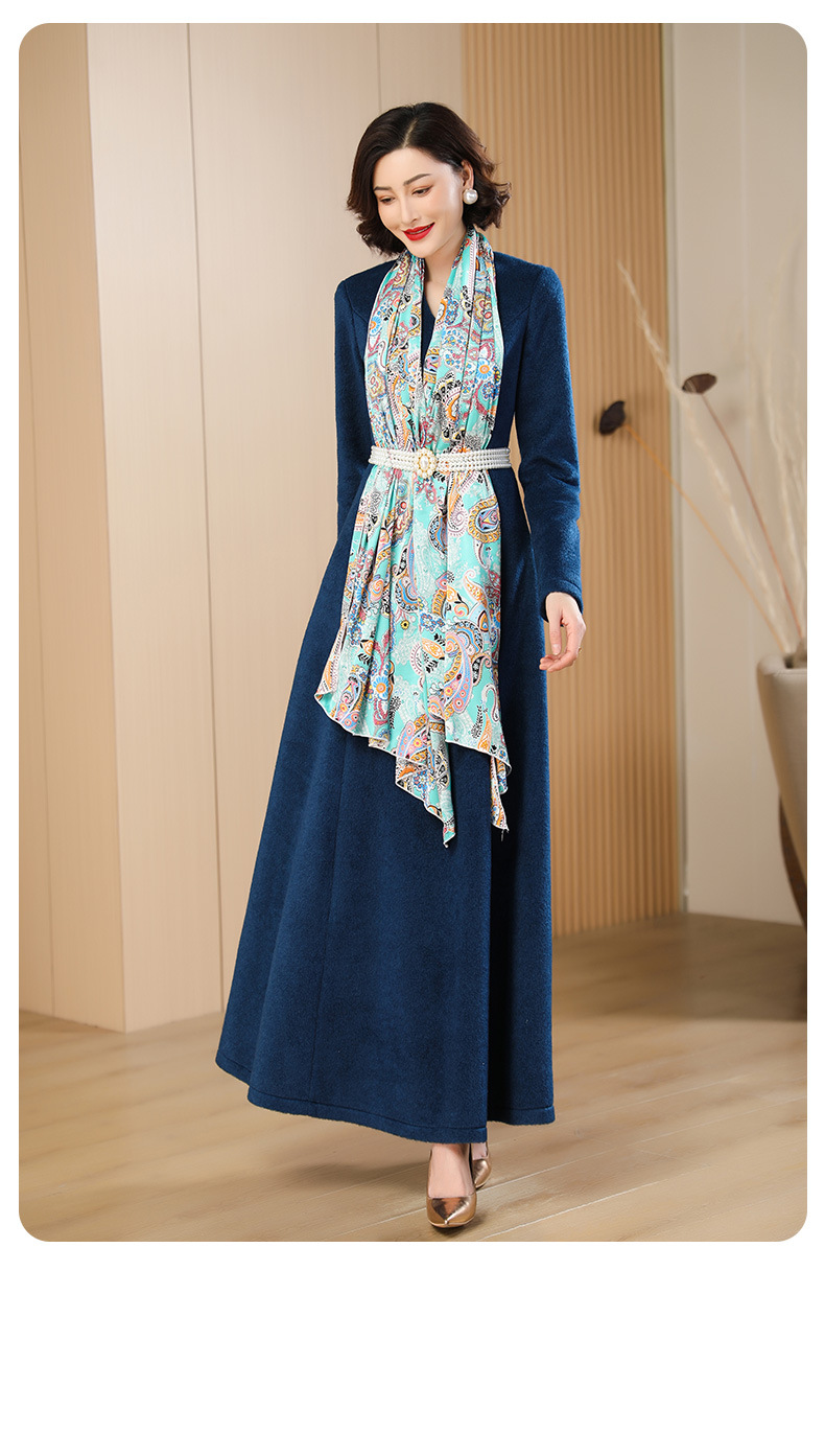 New Womens Long Velvet Dress Ladies Maxi V Neck Slim Swing Dress Retro Leisure