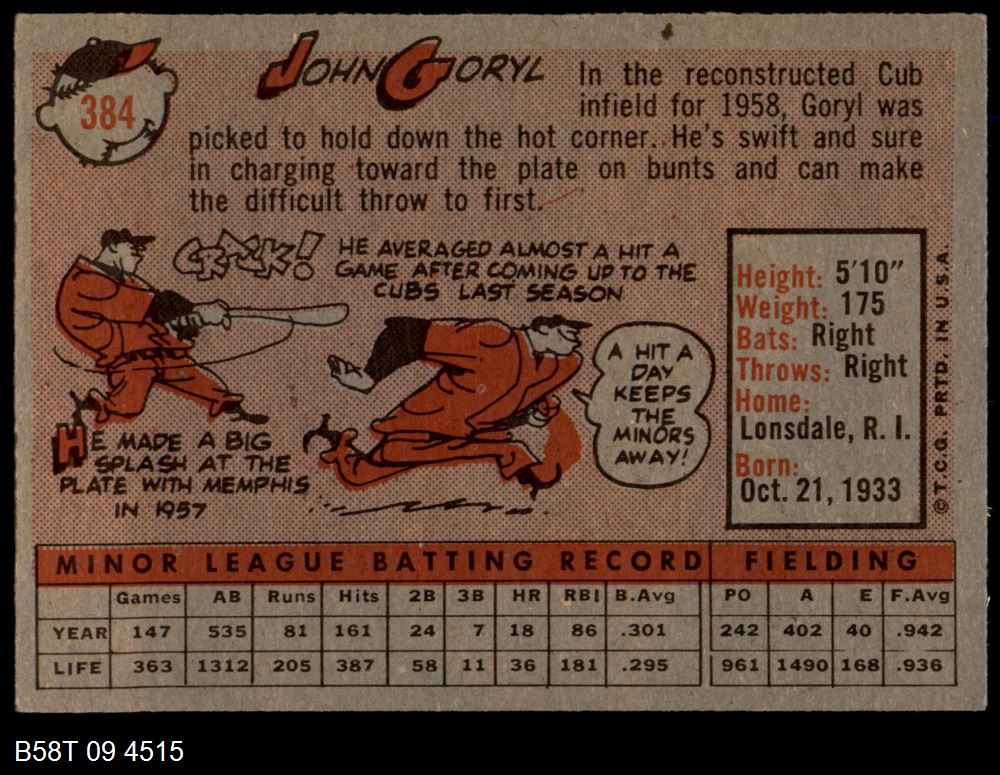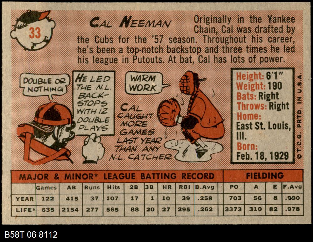 This is a 1958 Topps Chicago Cubs Near Team Set. Dean's Cards has designed our Near Complete Team Sets using the majority of cards for that team - leaving out the expensive super-star rookie cards, high numbers, short-prints, and multi-player rookie cards, reducing the price. the other cards can then be added, from our inventory of over a million cards, as your budget allows. For the exact cards contained in this set, as well as their front and back scans, please see the description below.