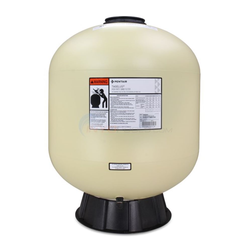 The Pentair Tagelus TA60D Sand Filter has a 24-1/2" tank diameter that requires 325 lbs of sand for operation used on in ground or above ground pools. The Pentair TA60D Sand Filter includes all the laterals inside the tank, filter tank base, lid closure, air relief valve, pressure gauge, and 1-1/2" Multiport Valve.