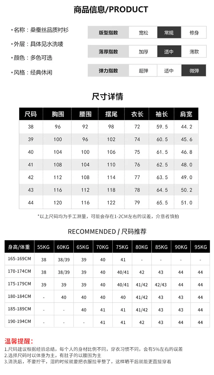 1: Size recommendations are based on your own experience. Everyone has different body proportions and different dressing habits, so there will be a deviation of about 5%.