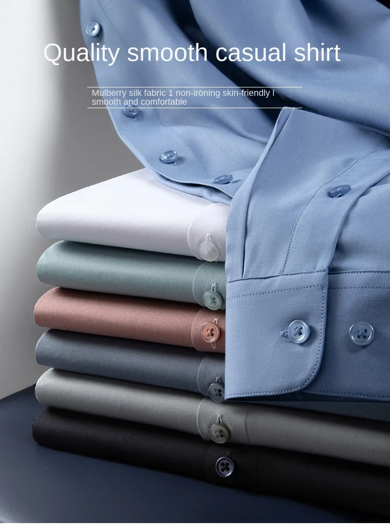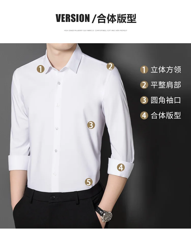 New high-end quality mulberry silk shirt, seamless, no-iron, slim-fitting, fashionable men's light luxury business casual shirt christmas gift