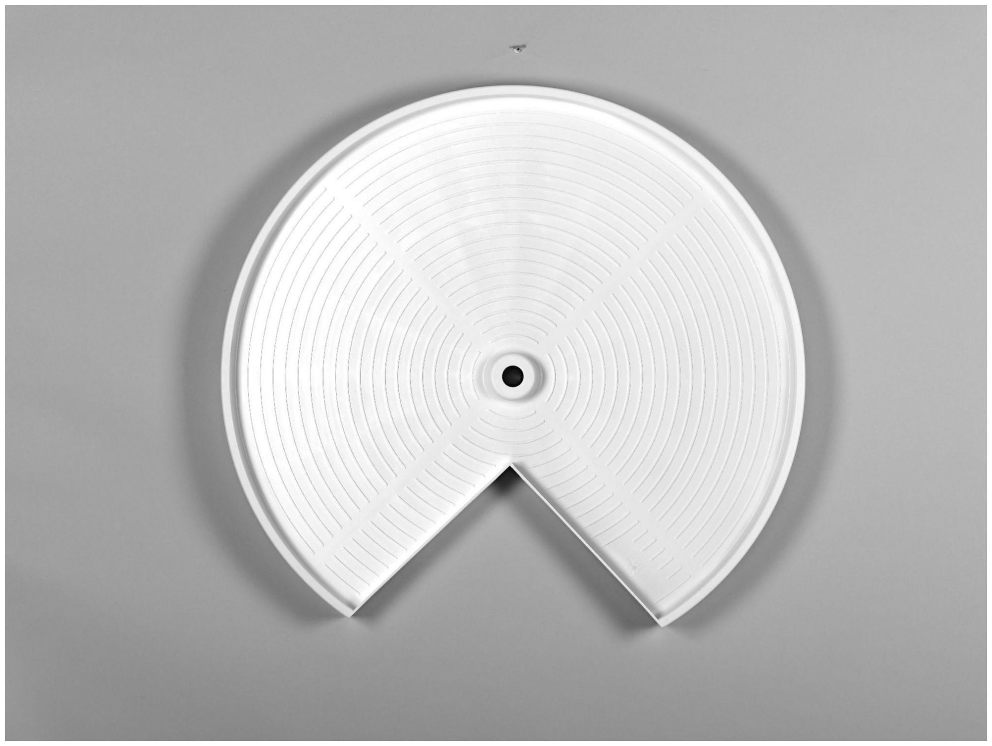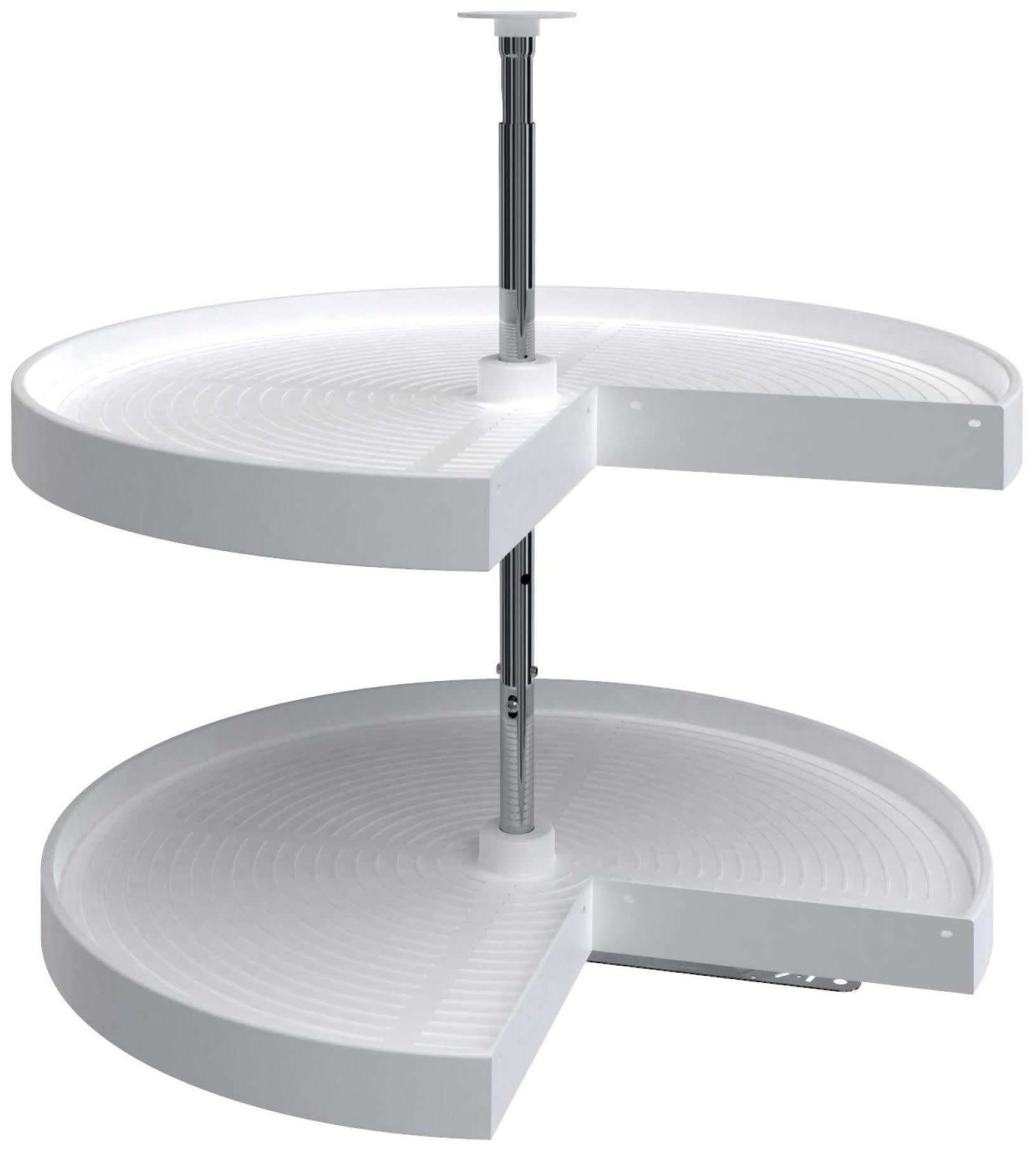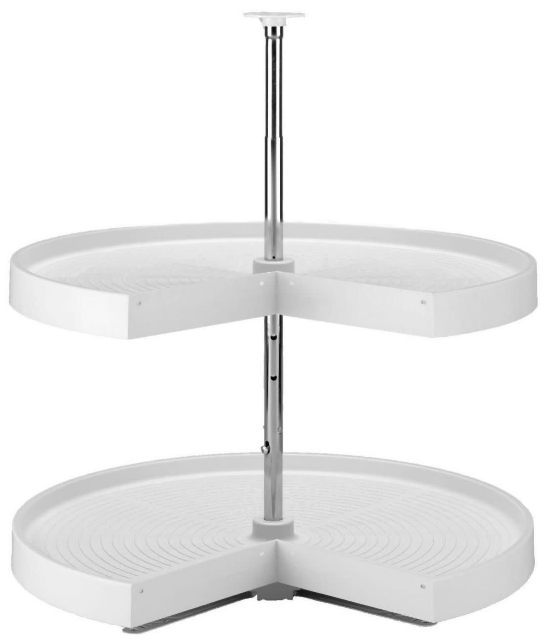 Item DescriptionAre you designing a new kitchen and want a corner base cabinet with a seamless 360-degree rotation, or do you already have a pie cut cabinet and need a replacement lazy susan? Look no further than Rev-A-Shelf's polymer pie cut with double shelf options, featuring luxurious posts and hardware. The durable and easy-to-clean polystyrene shelves mount directly to the cabinet door, and when in use, they travel together within the cabinet.