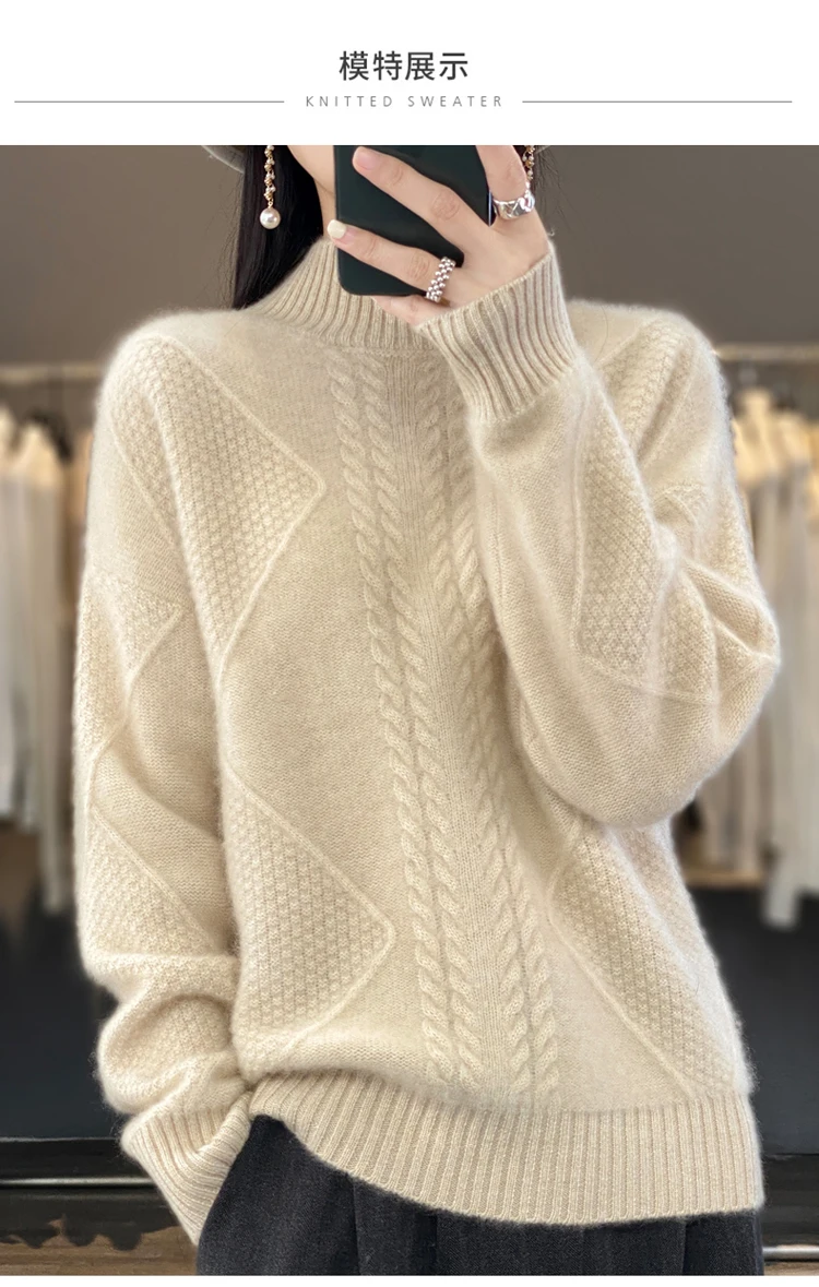 *Features: Fine 12-gauge fabric, Medium thickness. Normal fit, long sleeve turtleneck design. Lightweight, Warm and soft. This turtleneck pure merino wool sweater is suitable for fall and winter.