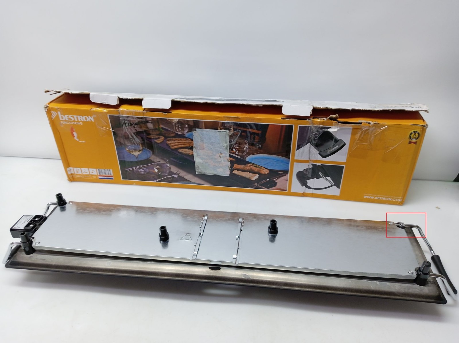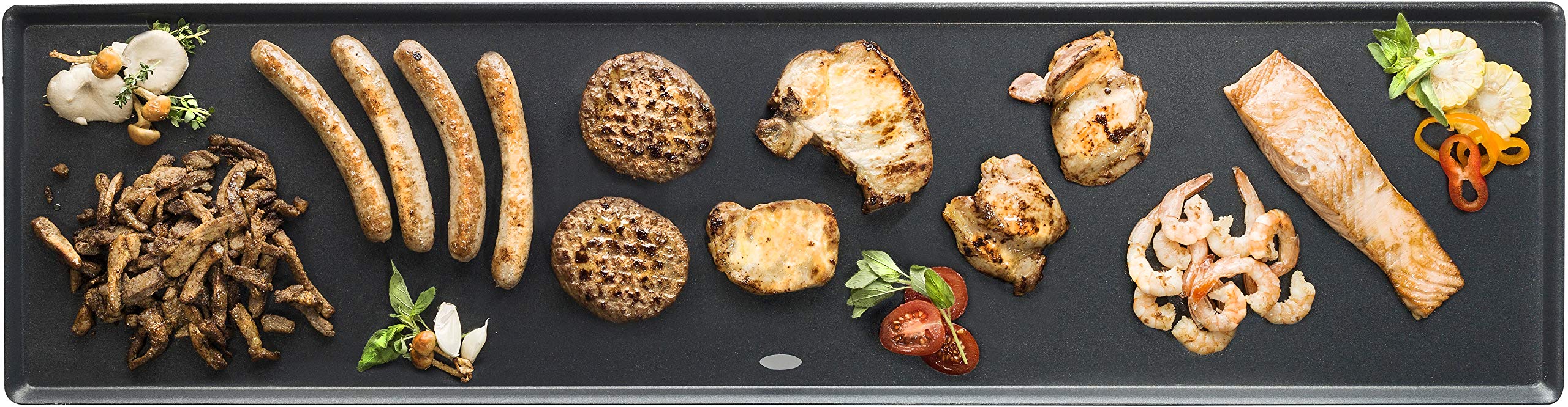 Sehr grosse Grillplatte (90,5x23,7 cm) fuer gemeinsames Zubereiten und direkten Genuss am Tisch, Geeignet fuer drinnen, den Balkon oder Garten
