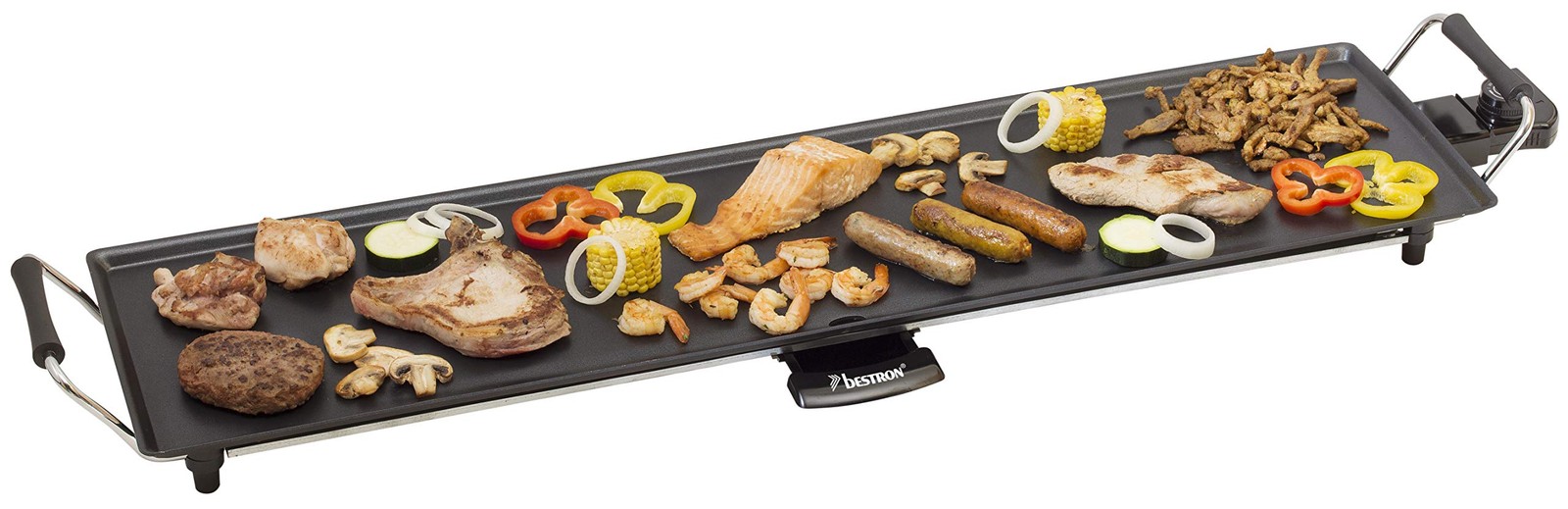 1 Bestron Grillplatte, Auffangschale, Kabellaenge: 86-88 cm, Leistung: 1800 Watt, Masse: 105,5x23,5x11 cm, Gewicht: 3,1 kg, Material: Metall/Kunststoff, Farbe: Schwarz, ABP604
