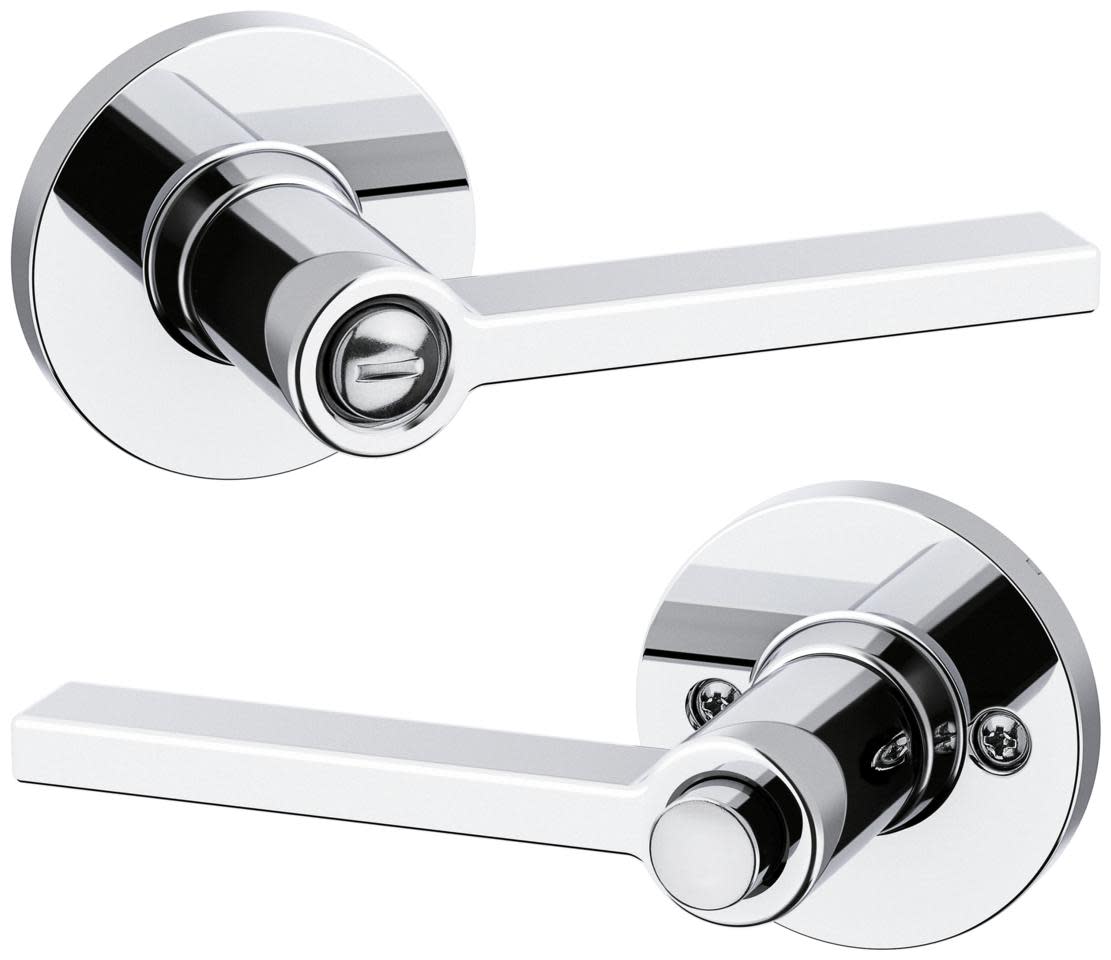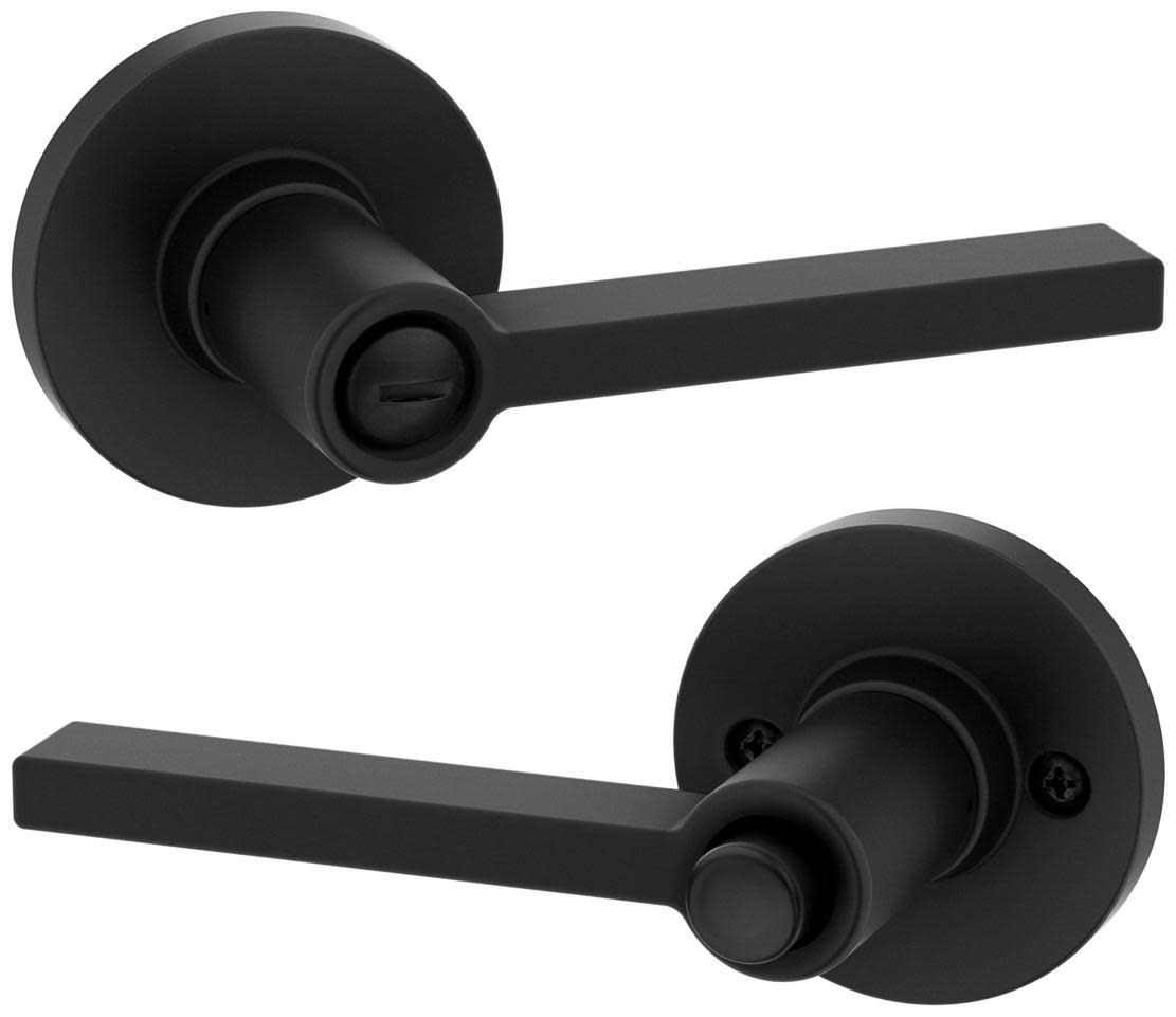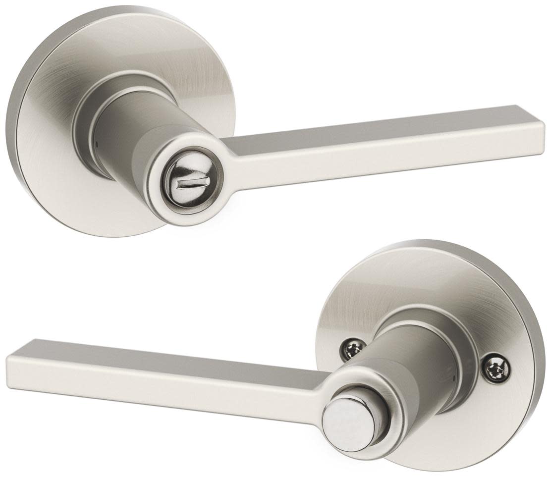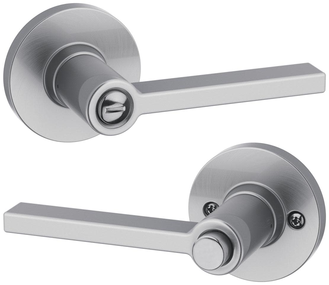 Privacy: Privacy door hardware features a locking mechanism on the interior for use on bedroom and bathroom doors where locking is needed. The exterior side features a small pin hole to unlock the door hardware from the outside.