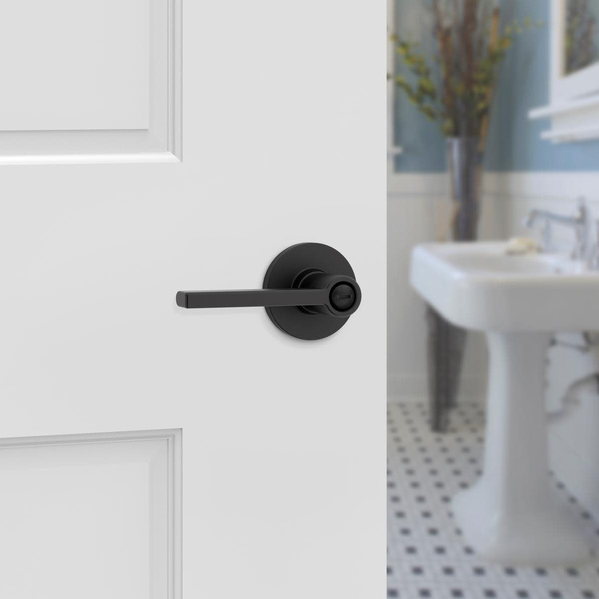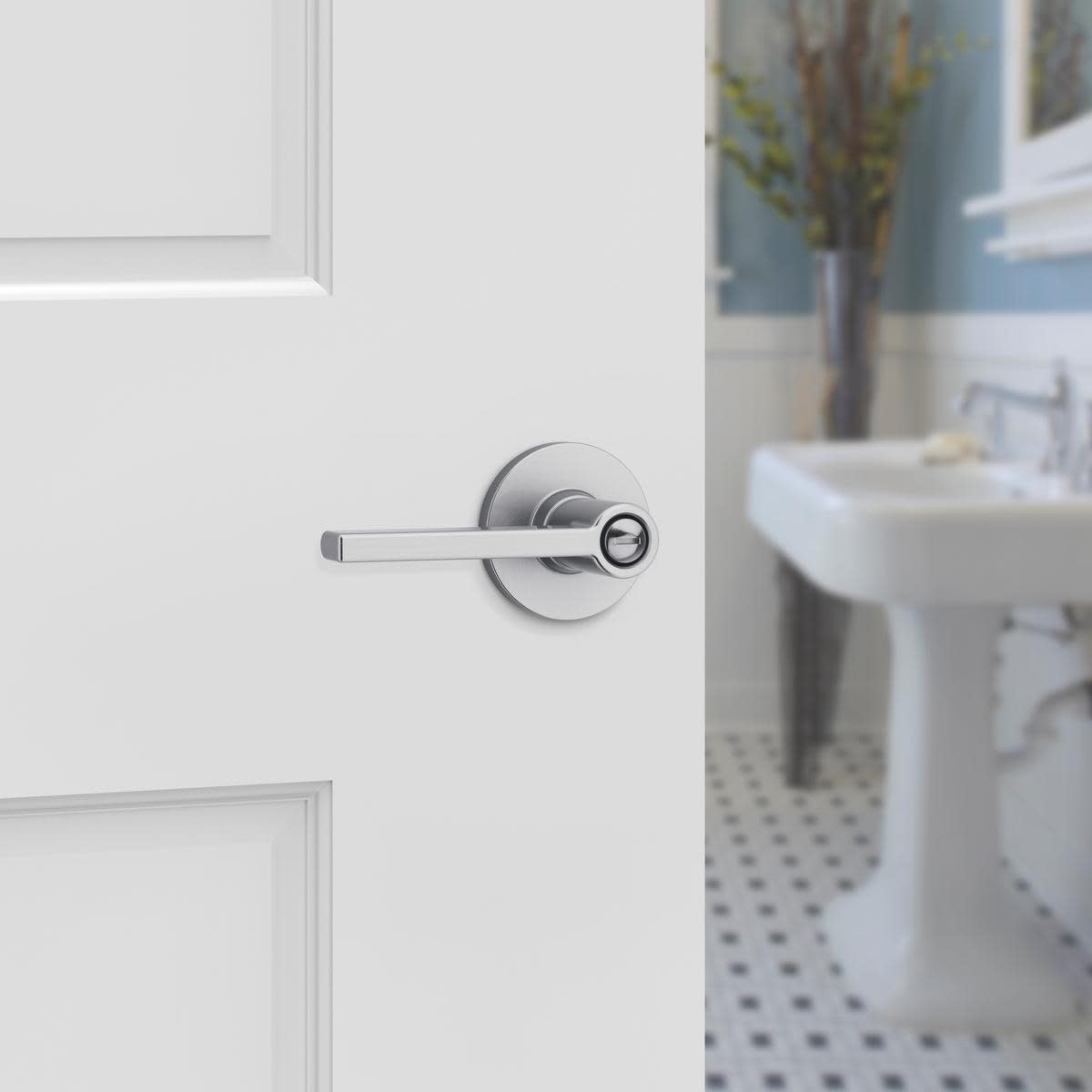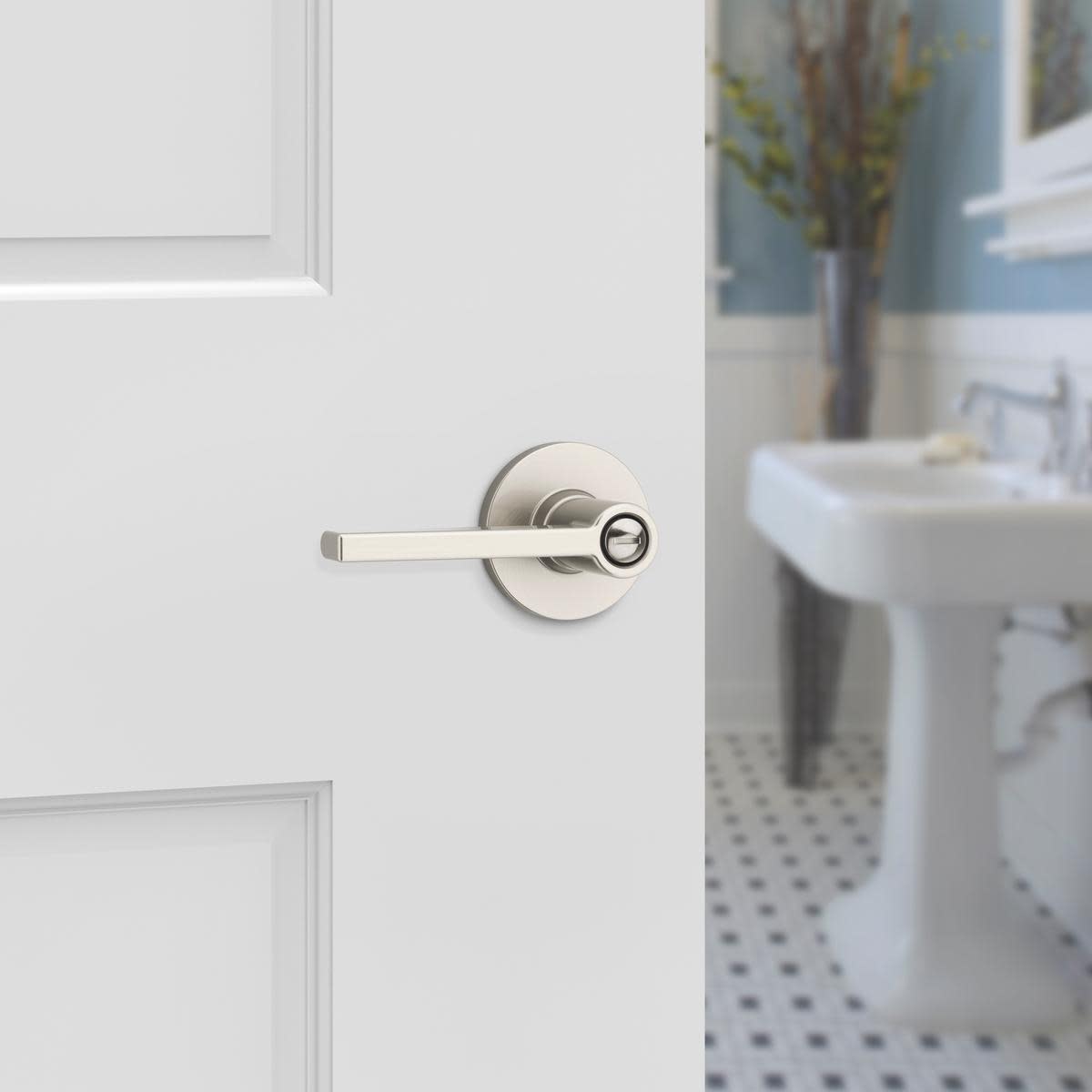 Privacy: Privacy door hardware features a locking mechanism on the interior for use on bedroom and bathroom doors where locking is needed. The exterior side features a small pin hole to unlock the door hardware from the outside.