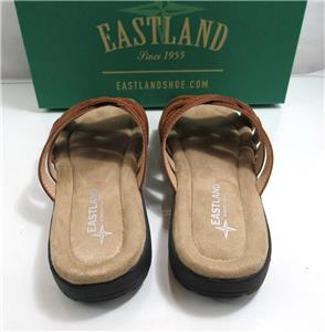 | Details | Go for strappy summer style with the Eastland Hazel. These slides are sure to be your favorite warm weather sandals with full-grain leather uppers, woven strap upper and an exclusive active memory foam footbed. Find your summer comfort with the Eastland Hazel! - Woven strap design - Top stitch detail - Slip on style - Eastland Exclusive Active Memory Foam insole supports and conforms to the curves of your foot |