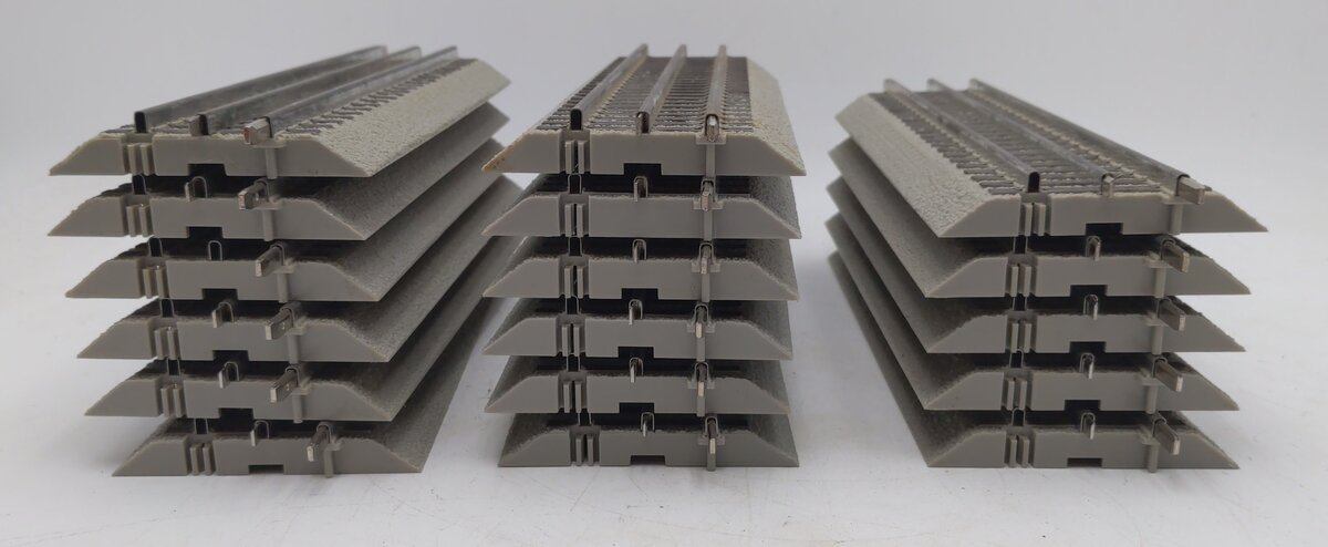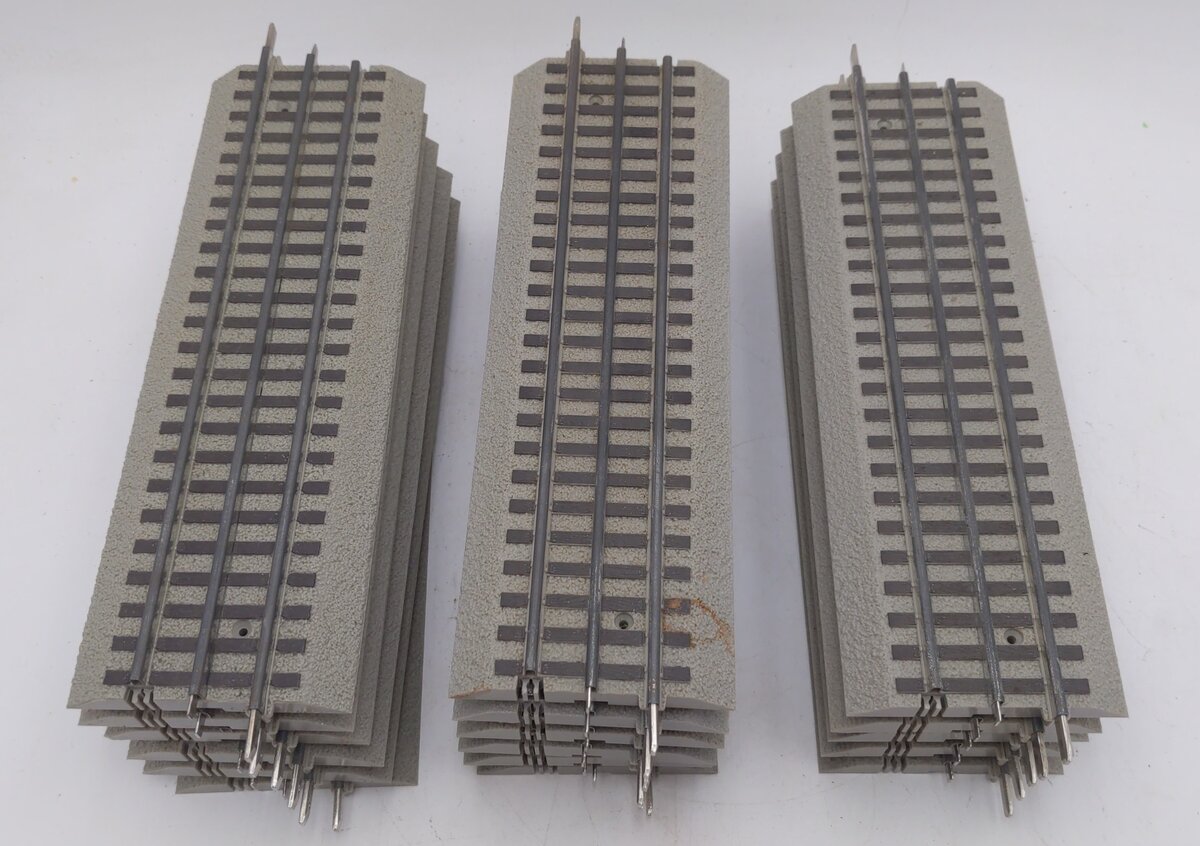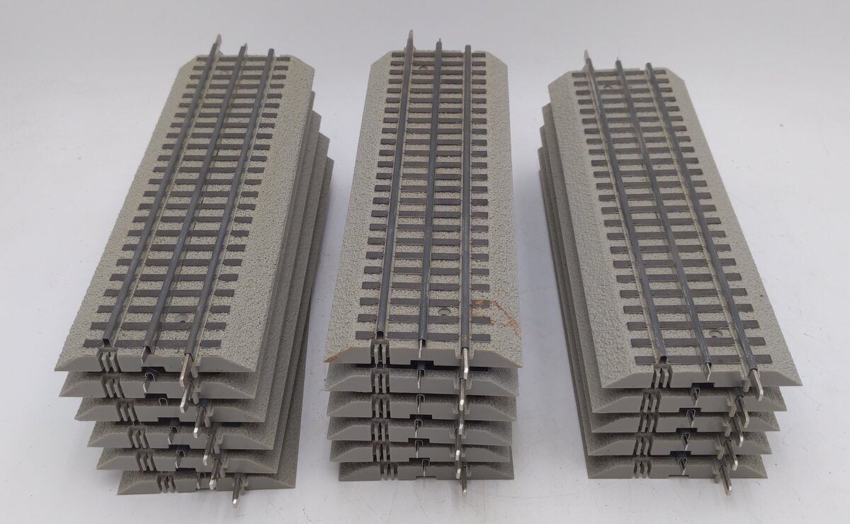Here are 17 Lionel 6-12014 FasTrack 10 Inch Straight Track (17). Each section is constructed of plastic with metal rails on a sturdy plastic bed.