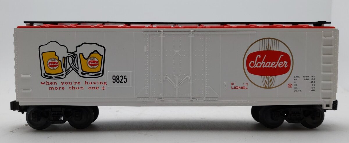 Here is a Lionel 6-9825 O Gauge Schaefer Reefer Car #9825.