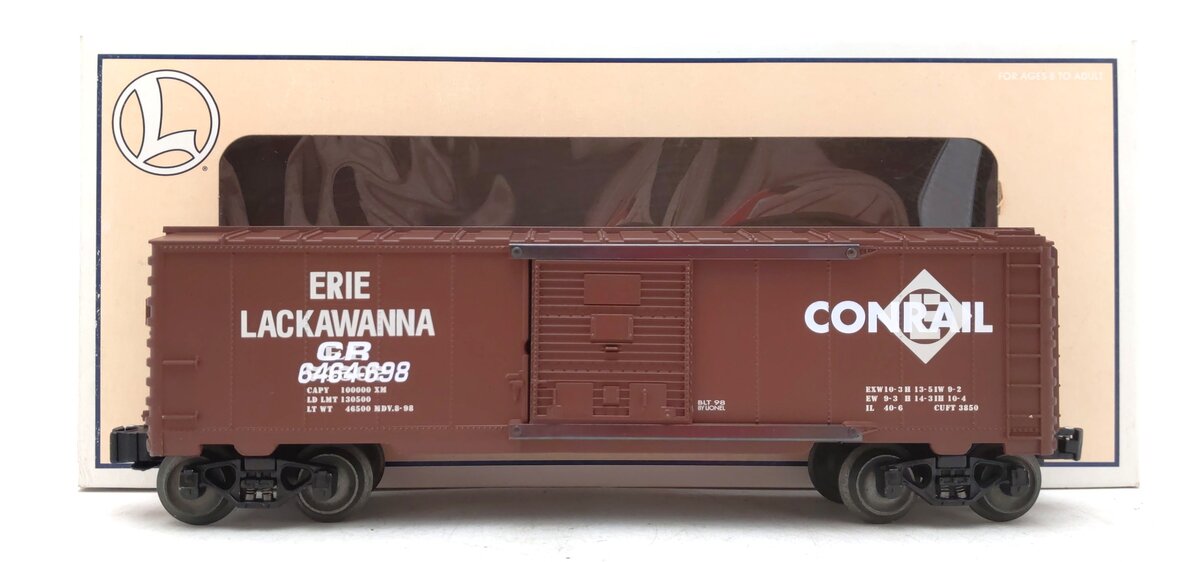 Here is a Lionel 29234 Erie Lackawanna/Conrail Boxcar from 1998. This car is painted with the "post-merger" look often seen on freight cars in recent decades. It features die cast sprung trucks, operating couplers, and sliding doors.