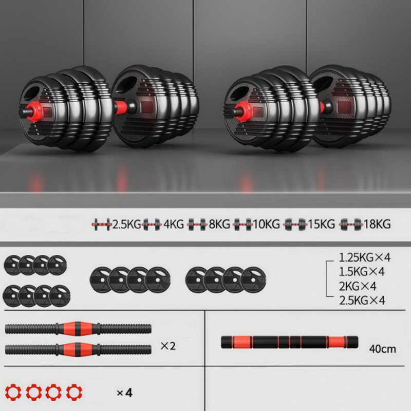 3-in-1 multifunctional dumbbell set: Adjustable dumbbell set, you can get a pair of dumbbells, barbells, kettlebells, which can help you do many exercises, including bench presses, squats, etc., making it suitable for a series of exercises