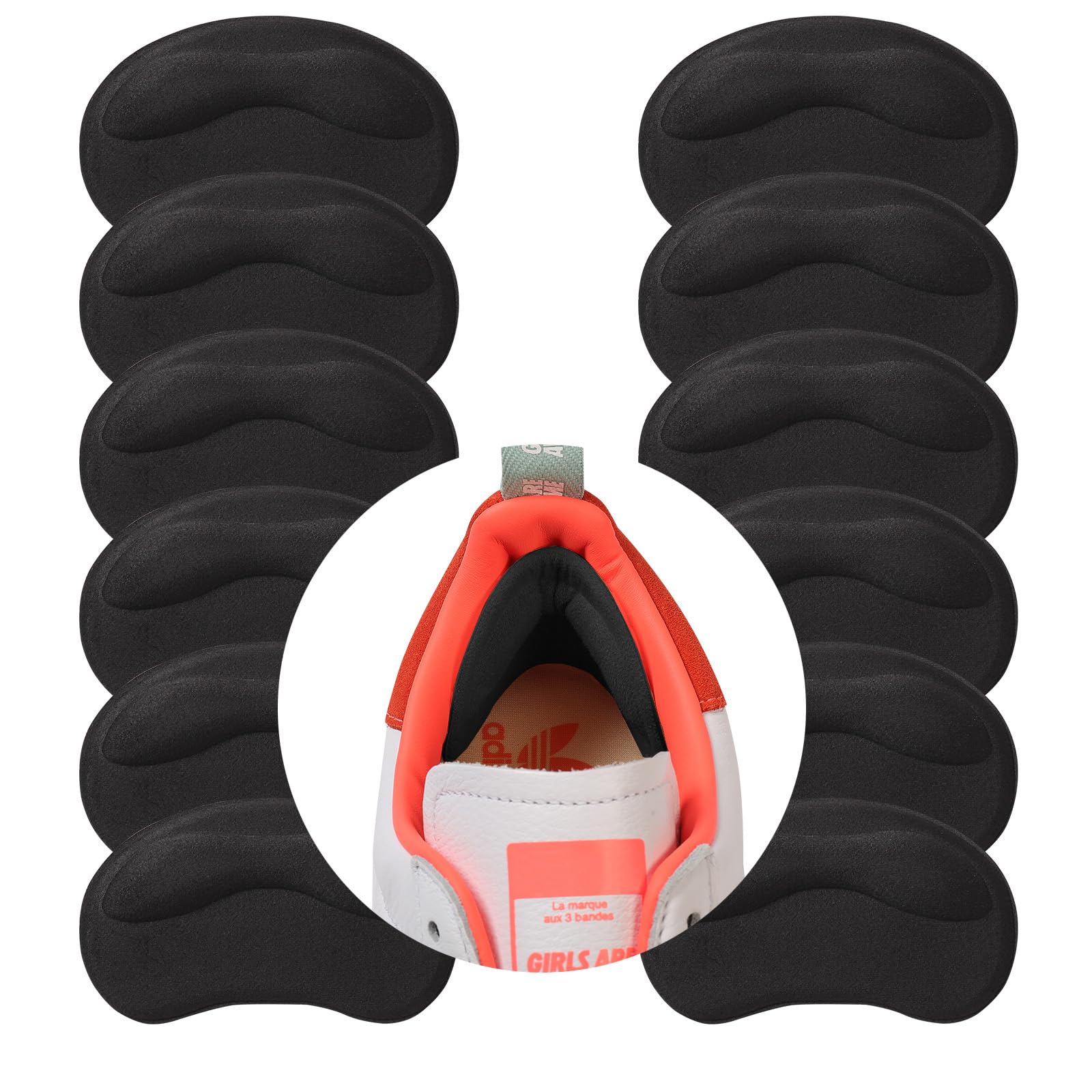 GQTJP Heel Pads Cushion Inserts for Loose Shoes, Grips & 6 Pairs, Black