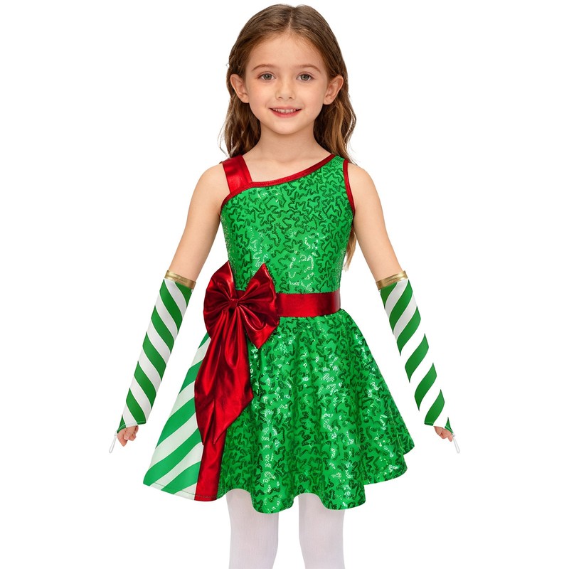 This leotard dress with oversleeves is ideal for holiday festivals, Christmas parties, school events, or any special occasion during the holiday season, making your girl the center of attention.