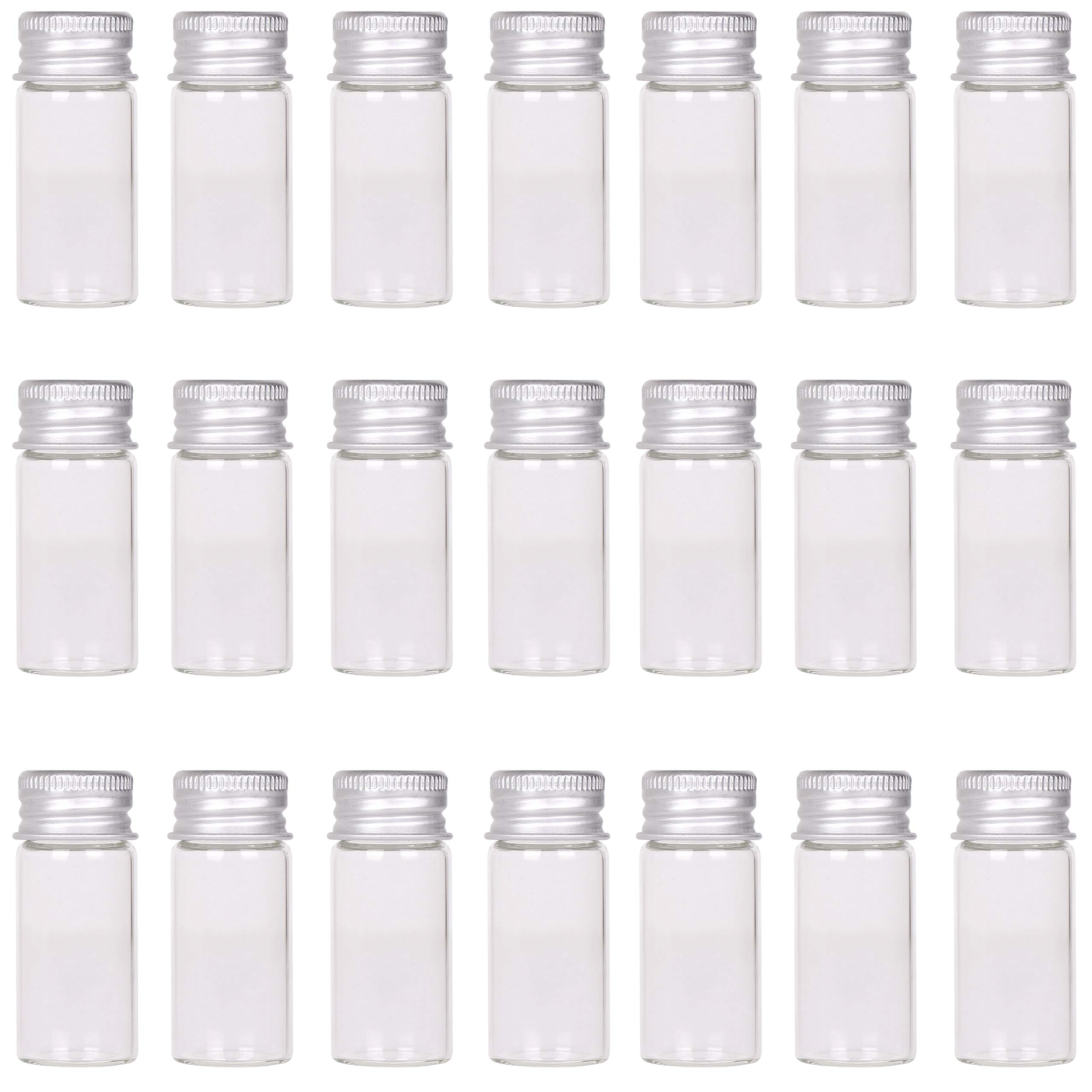 These high quality clear glass bottles with screw caps, are perfect for storing,display,decoration.The tiny vials could be used as sample/message bottle,wedding favors party decorations,liquid storage,art DIY.Package includes:24X 10ml glass bottles with aluminium scew caps