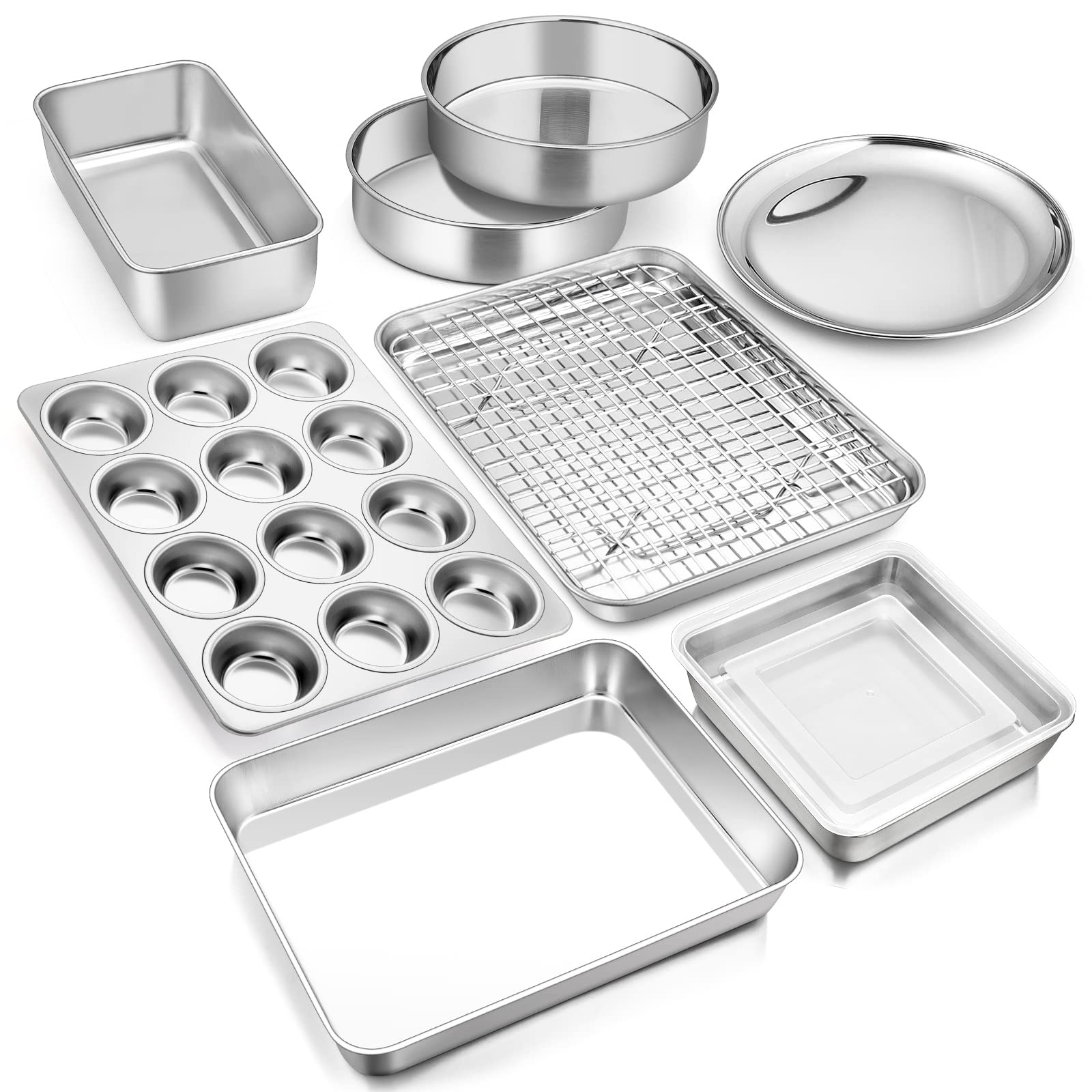 HEALTHY STAINLESS STEEL- Made of high quality 100% stainless steel without toxic coating, Prevents harmful substances produced during high temperature baking, With super mirror polished surface no easy rust or discolor, Healthier alternative to aluminum pan