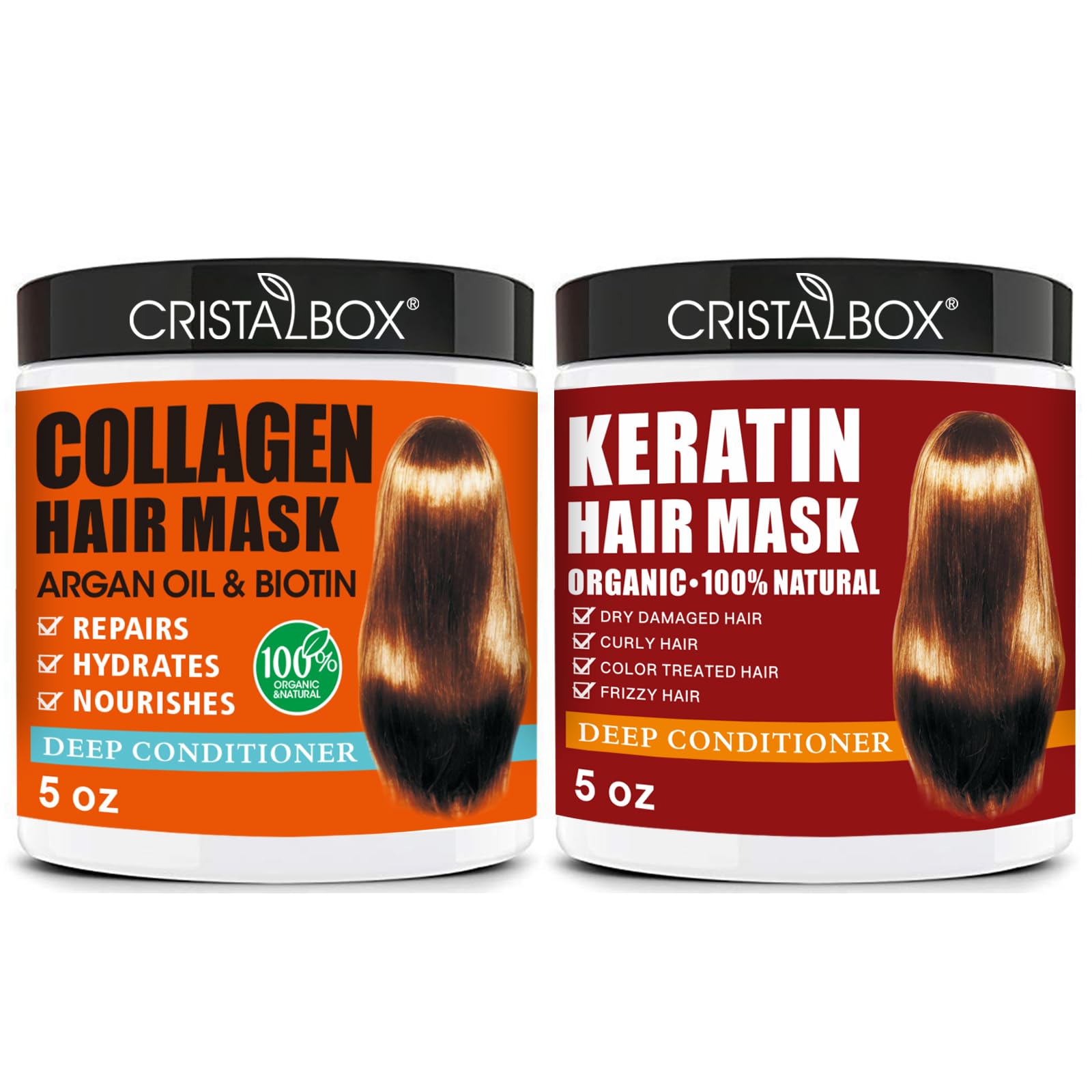 Collagen Hair Mask:Contains collagen, argan oil and natural herbs to deeply repair dry damaged hair. Penetrates hair to provide intense hydration, leaving hair smooth and shiny. A rich, deep repairing treatment mask for damaged, over-processed hair of all textures