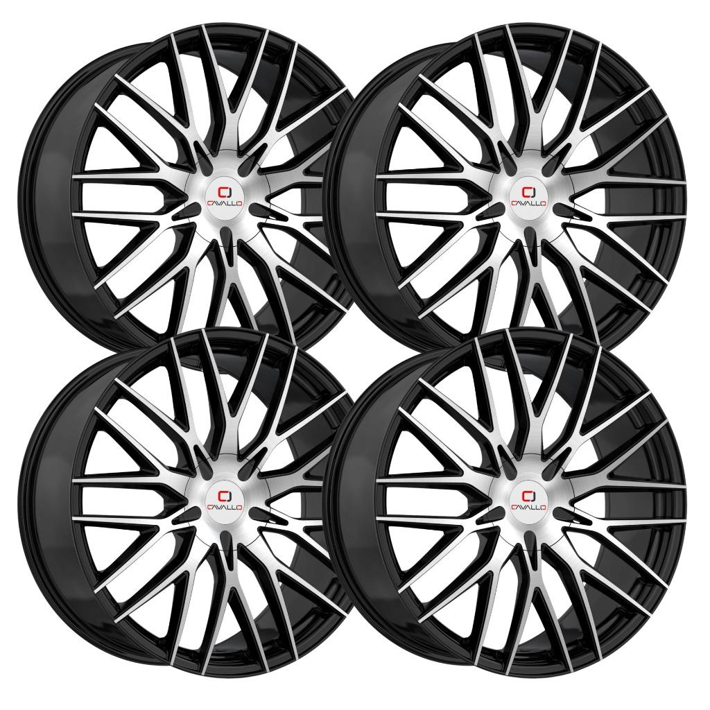 We are an authorized dealer for Cavallo Wheels And up for sale is a brand new (set of 4) Cavallo CLV-45 wheels with complete manufacturers warranty Please contact us prior to purchasing in some rare cases an item may be temporarily backordered Diameter - 26" Width - 9.5" Offset - +25 Centerbore - 87.1 Bolt Patttern - 6x5.5 6x139.7 Finish - Black Machined (Q) Is this listing a set of 4 rims or just 1 ? A) The listing is for a complete set of 4 wheels Q) Do these rims come with center caps ? A) All wheels come with center caps free of charge Q) Do these wheels come with lug nuts locks and valve stems ? A) No, But we can add any of these to your order for a small charge. Please contact us if you would like to add them.