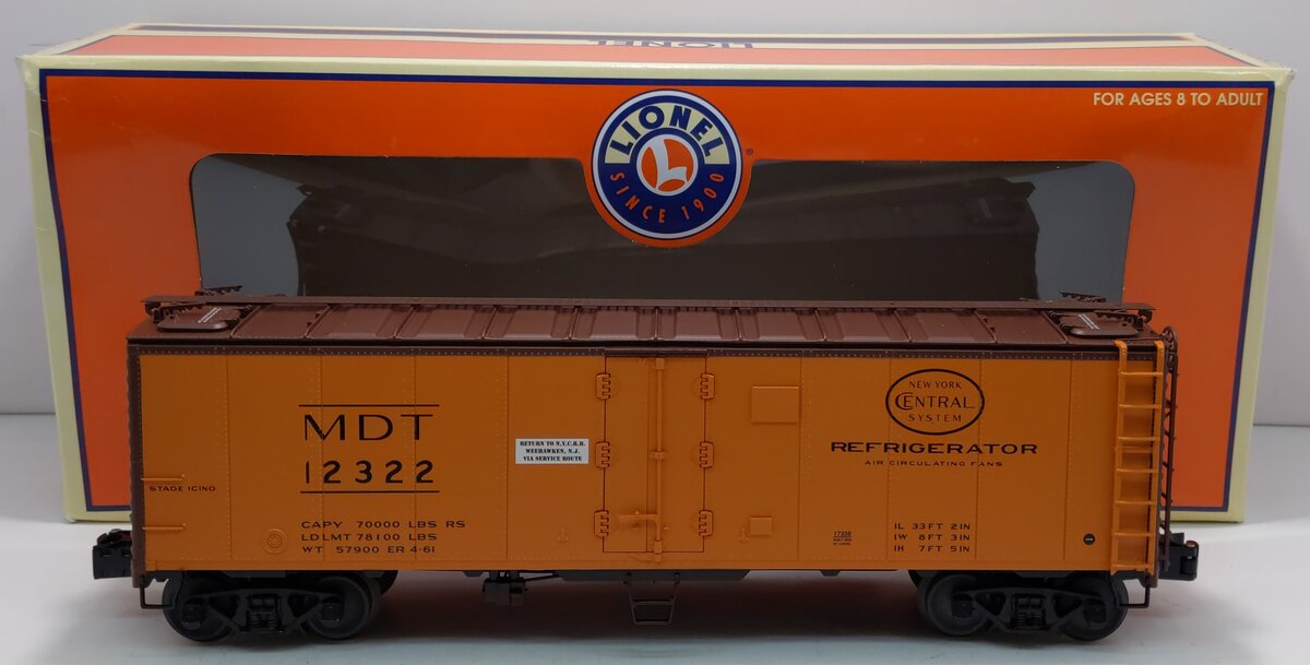 Here is a Lionel 6-17338 O-Gauge Merchants Dispatch Transit Steel-Sided Refrigerator Car #12322.