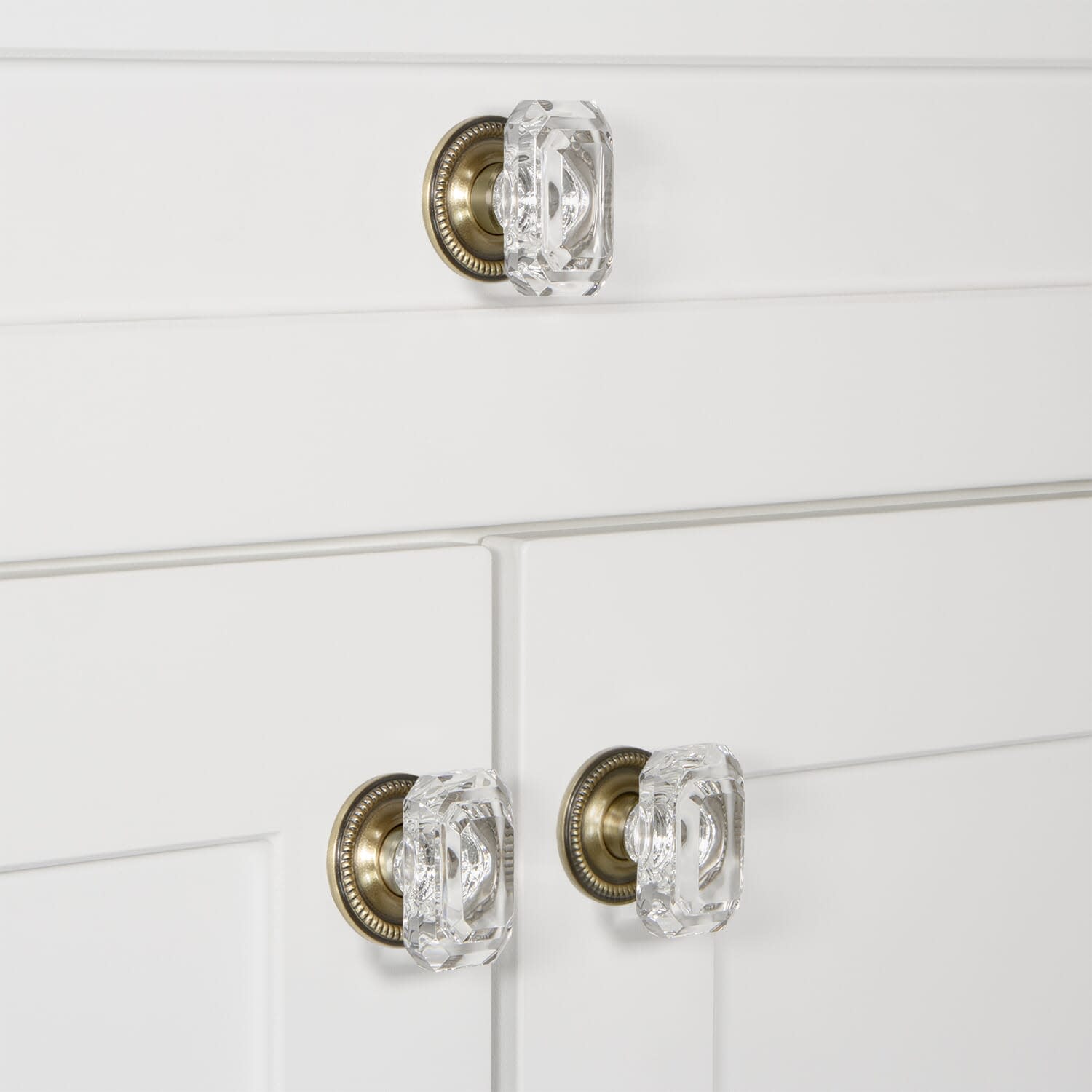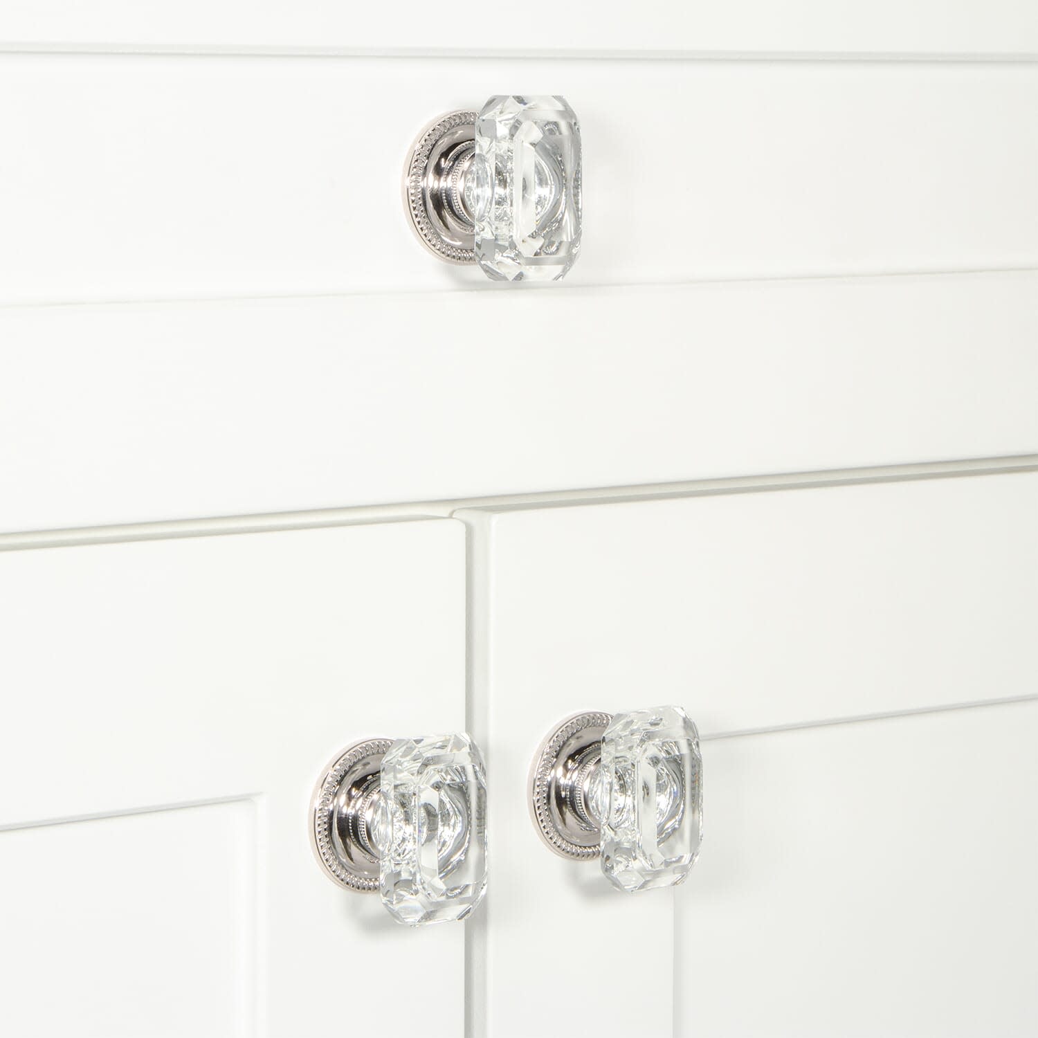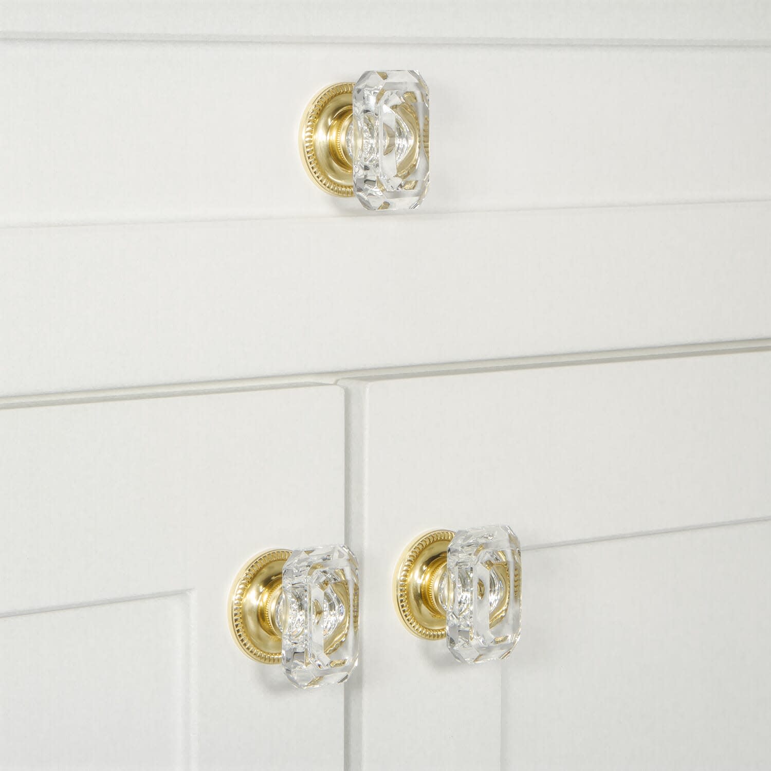 Item DescriptionElevate your space with the Baguette clear crystal cabinet knob. The diamond-inspired, rectangular shape paired with the classic rope detail of the Newport rosette adds sophistication to any cabinetry or furniture.
