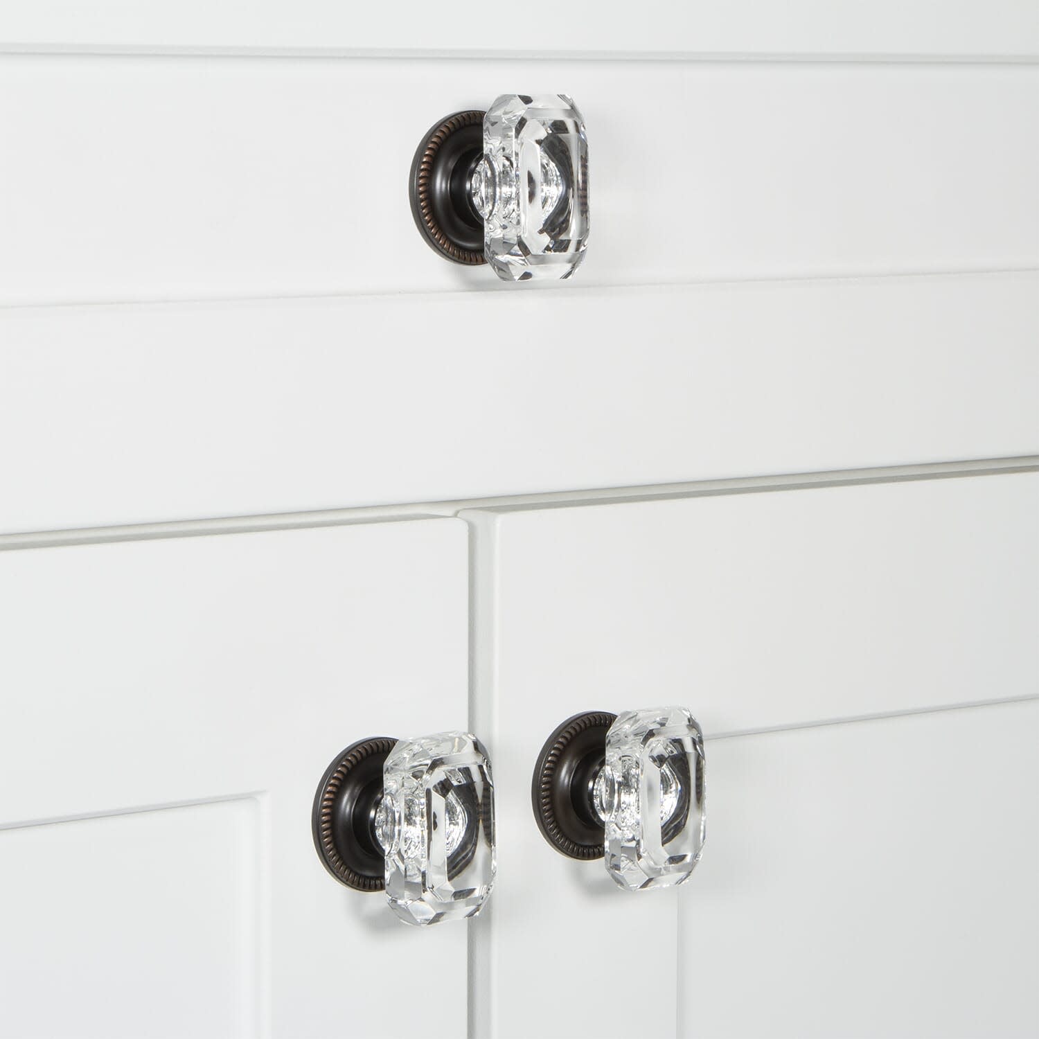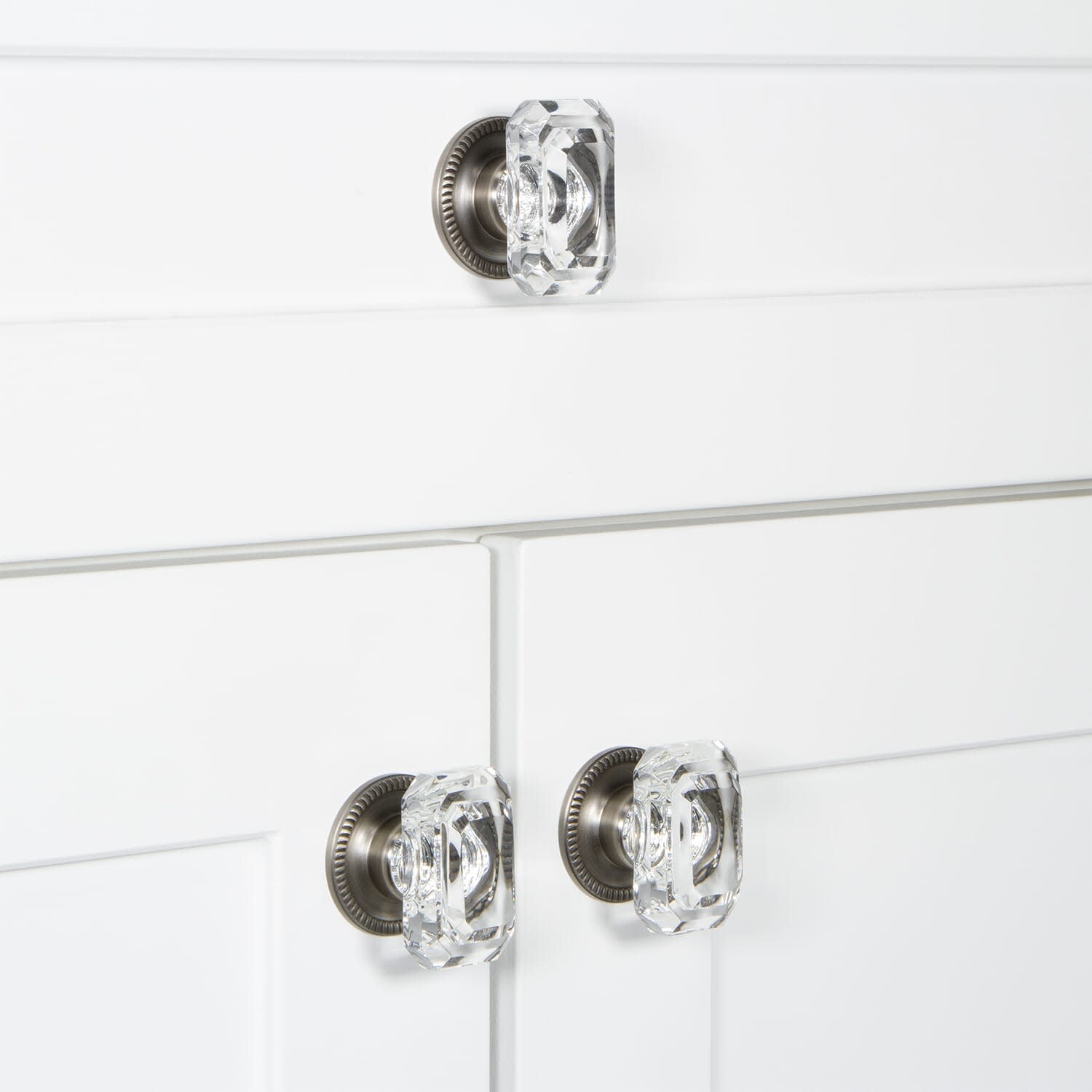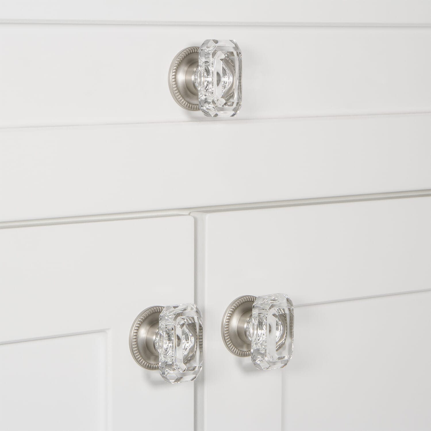 Item DescriptionElevate your space with the Baguette clear crystal cabinet knob. The diamond-inspired, rectangular shape paired with the classic rope detail of the Newport rosette adds sophistication to any cabinetry or furniture.
