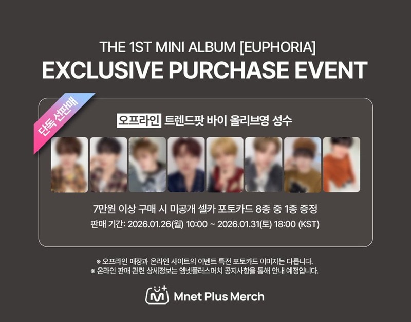 If you purchase more than 70,000KRW , one of the 8 PHOTOCARD will be shipped randomly