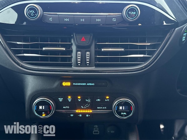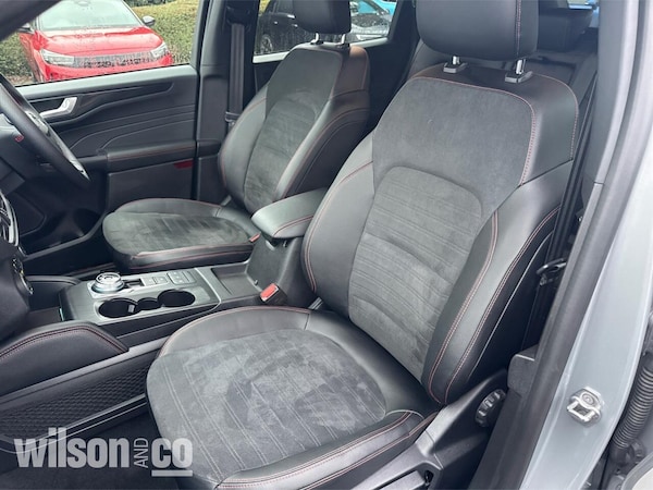 This 2022 Ford Kuga ST-Line offers an efficient and advanced driving experience with its 2.5L Petrol Plug-in Hybrid engine, meeting the Euro 6 emission class. This model comes equipped with DEATC Dual-Zone Electronic Automatic Temperature Control for personalised comfort, the Ford Key Free System for effortless keyless entry and start, and automatic on-off headlights for convenience. Navigating tight spaces is made simpler with front and rear parking sensors, while the wireless charging pad keeps your devices powered up on the go.The ST-Line trim level signifies a sporty and dynamic character, enhancing the Kuga's appeal. The combination of its plug-in hybrid technology, advanced climate control, and smart parking assistance demonstrates a superior approach to everyday driving compared to many other vehicles in its class. This Ford Kuga is designed to provide a comfortable, convenient, and modern motoring solution.