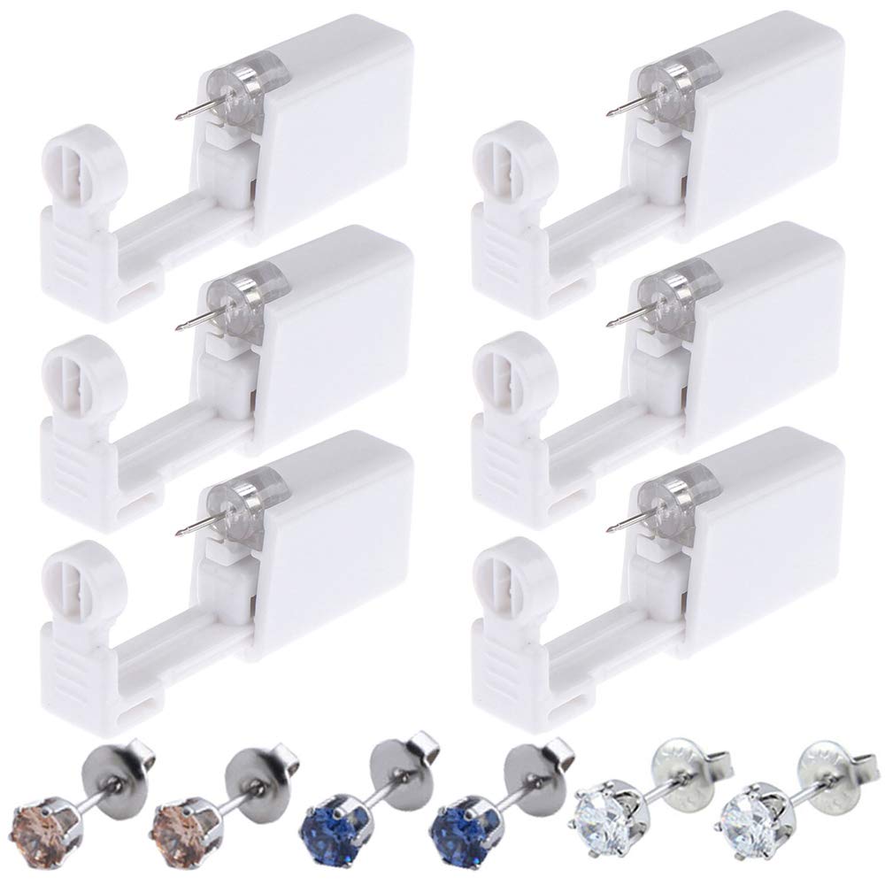 Ear Piercing Gun - Silmy 6 Pack Ear Piercing Kit Disposable Self Ear Piercing Gun with Ear Stud and Clean Tool Pierce Kit ToolEar Piercing Gun Specification:Color: WhiteMaterial: Plastic + Stainless steel ear studs + Cubic ZirconiaPackage includes: 6 x Ear Piercing Gun; 6 x Ear Studs; 6 x Clean ToolsSilmy Ear Piercing Gun Usage Steps:Step 1 - Wash your ear and hand before use.Step 2 - Mark you want to pierce place.Step 3 - Hold piercing gun pin to the mark on the ear.Step 4 - Push hard, the ear stud will stay on the ear, and the piercing gun will automatically fall off.Tips: More in details information please refer the fourth images of products.Ear Piercing Gun Features:- Each piercing unit includes a piercing gun with a built-in stud. Used for beginners or professionals.- Disposable piercing gun, can not be reused. Individually package.- Easy to use, perfect for professional piercing and piercing at home.- Before you use the ear piercing gun, please sure clean your hand and ear.Silmy Ear Piercing Gun Service Team:We are dedicate to provide the 100% satisfaction promise for our customers.If for any reason you are not fully satisfied about the Silmy Ear Piercing Gun Kit, please contact us at any time. Refund or Exchange are acceptable.