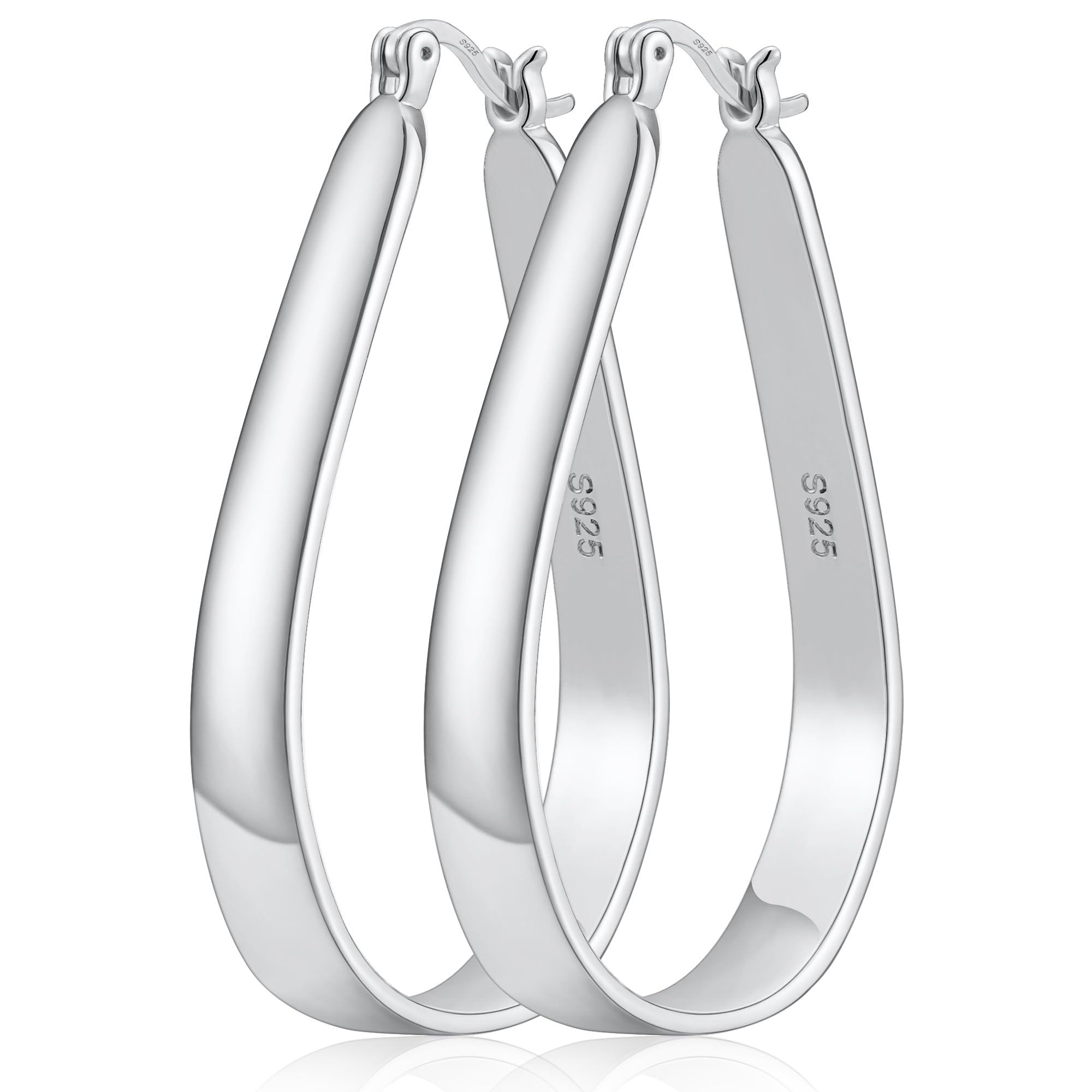 Large Silver Hoop Earrings for Women:Sterling silver oval hoop earrings are carefully made of Handcrafted high-polished sterling silver hypoallergenic material, lead-free and nickel-free, long-lasting and non tarnish, hoop earrings perfect for your sensitive ears.