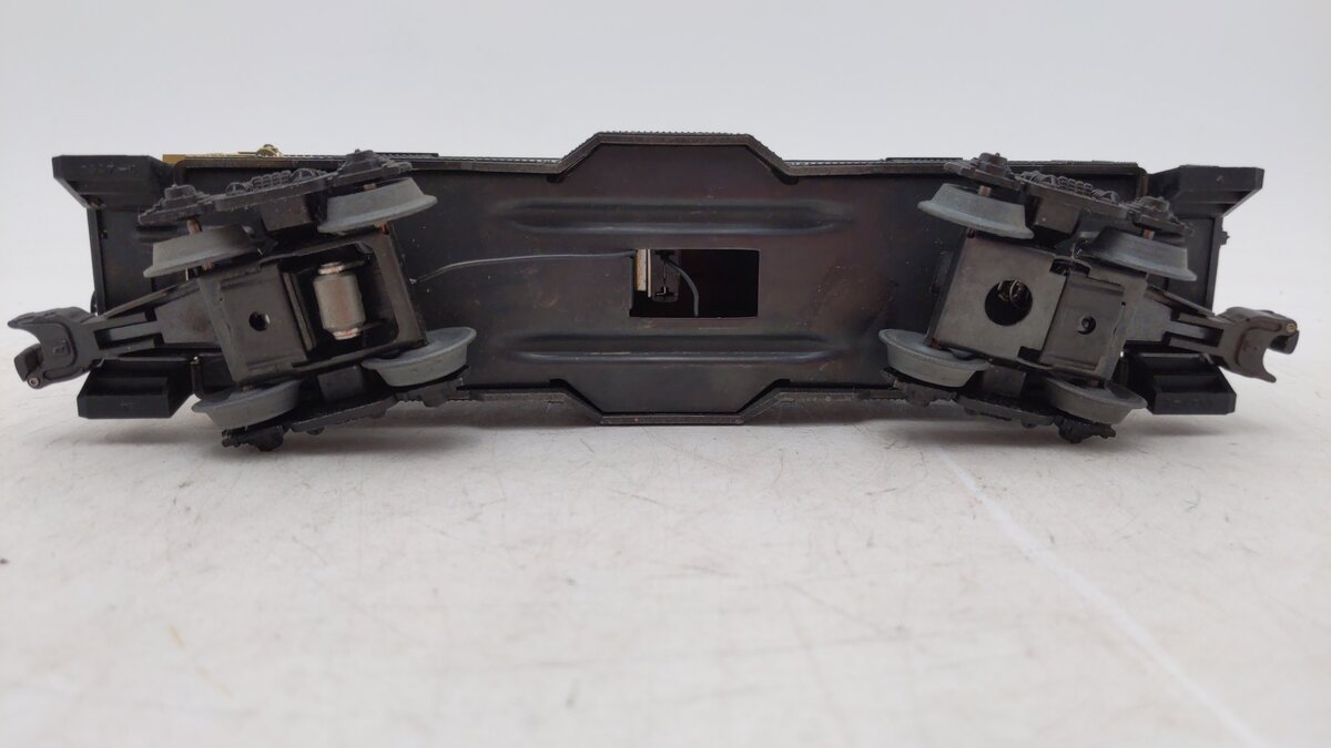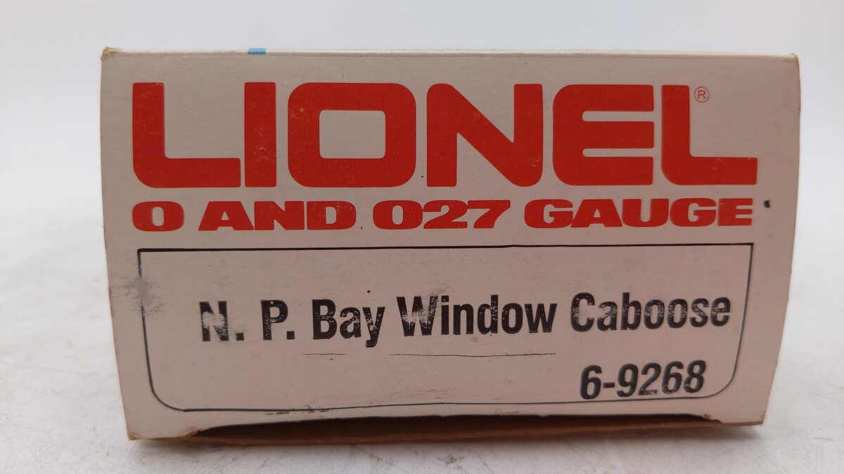 Here is a Lionel 6-9268 O Gauge Northern Pacific Bay Window Illuminated Caboose from 1977. This car has a bit of an interesting history. Originally, Lionel made the 1976 Northern Pacific Service Station Special set with a 9177 NP Caboose in prototypical green and yellow markings. However, many collectors complained that it did not match the 8666 GP-9 Locomotive, so Lionel made the 9268 the following year as an add-on to the set to match the engine. This car was never in the regular Lionel catalog and is somewhat hard to find. This caboose features interior illumination, die-cast metal trucks, die-cast metal operating knuckle couplers, metal wheels and axles.